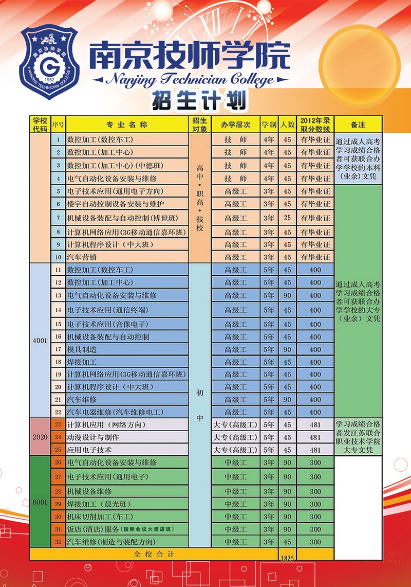 2013年南京技师学院招生计划表