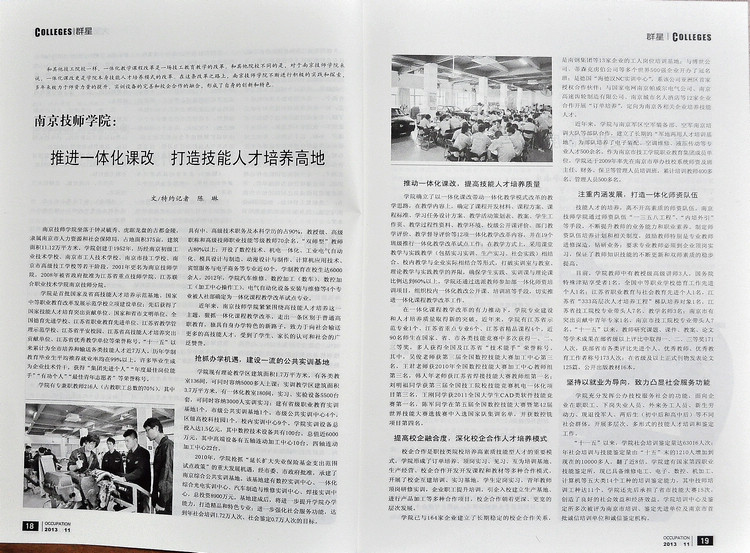 2013年11月下 《职业》18-19页—《南京技师学院:推进一体化课改 打造技能人才培养高地》