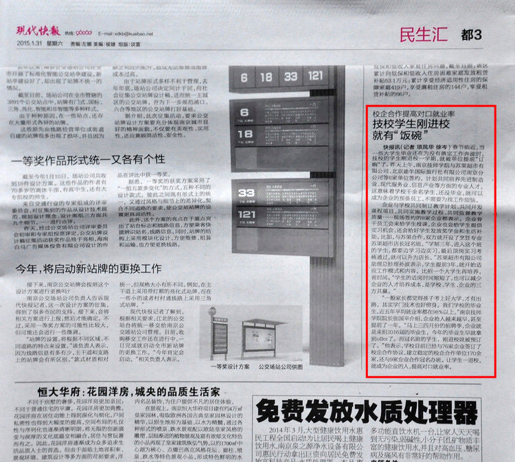 《现代快报》都3版—校企合作提高对口就业率 技校学生刚进校就有“饭碗”