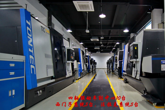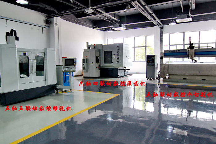 五轴加工实训基地包含:五轴加工中心实习区、三维成型室、精密加工室、精密测量室,配置企业生产型五轴加工中心10台、五轴雕铣机、六轴滚齿机、五轴水切割机、三维快速成型机、三坐标测量仪等。