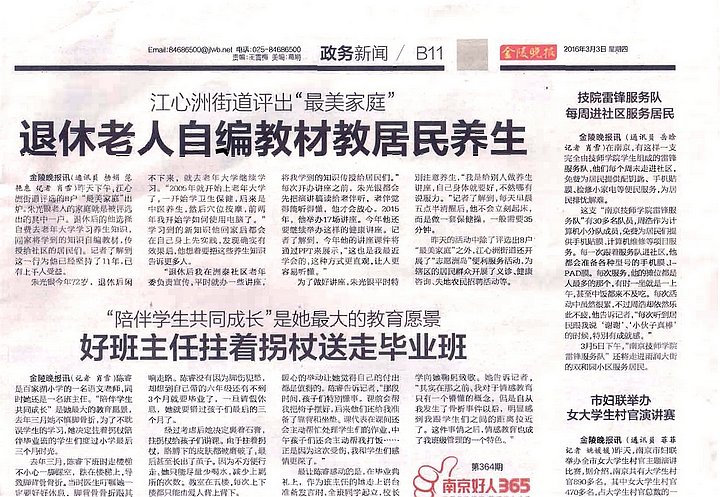 《金陵晚报》B11-技院雷锋服务队每周进社区服务居民