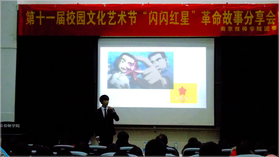 20161213日是第三个南京大屠杀死难者国家公祭日,在这个特殊的日子里,我院团委组织举办第十一届文化艺节“闪闪红星”革命故事分享会,院组织人事处丁辉副处长、学生工作处孙京宁副处长、院团委胡珍霞书记、杨芳副书记,语文教研组组长史香云老师担任比赛评委。
