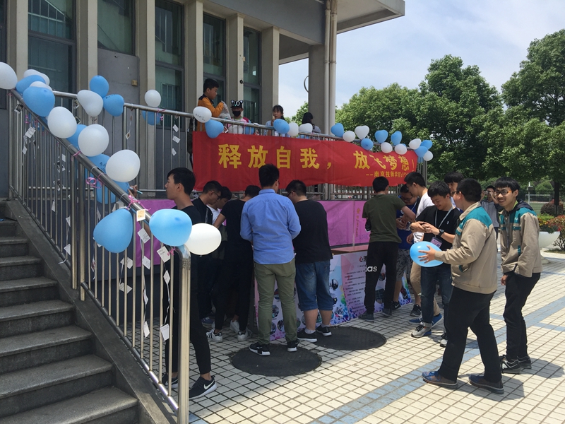 5月24日南京技师学院广场心理咨询活动一食堂小广场举行,本次活动的主题为:释放自我,放飞梦想。
