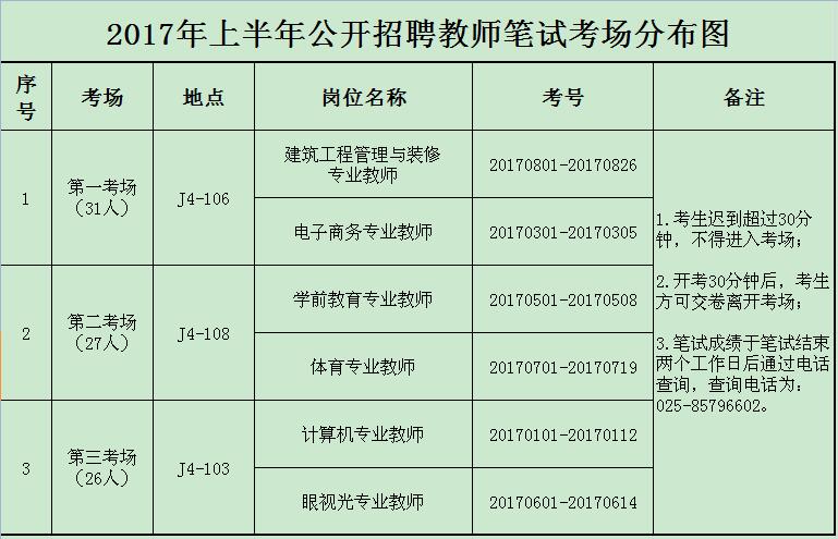 南京技师学院2017年上半年公开招聘教师笔试考场分布图