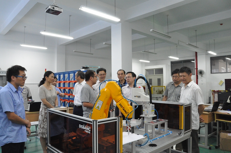 2017823,中电熊猫集团党委副书记钟友祥、熊猫股份副总经理、熊猫装备总经理刘坤、中电熊猫集团人力资源部总监薛玉恒等一行4人,来院慰问熊猫集团即将参加全国工业机器人和钳工技能竞赛的选手。市人社局巡视员周政学,学院党委副书记、副院长张金梅,副院长侯放等领导陪同钟书记慰问竞赛选手并参观我院实训场地