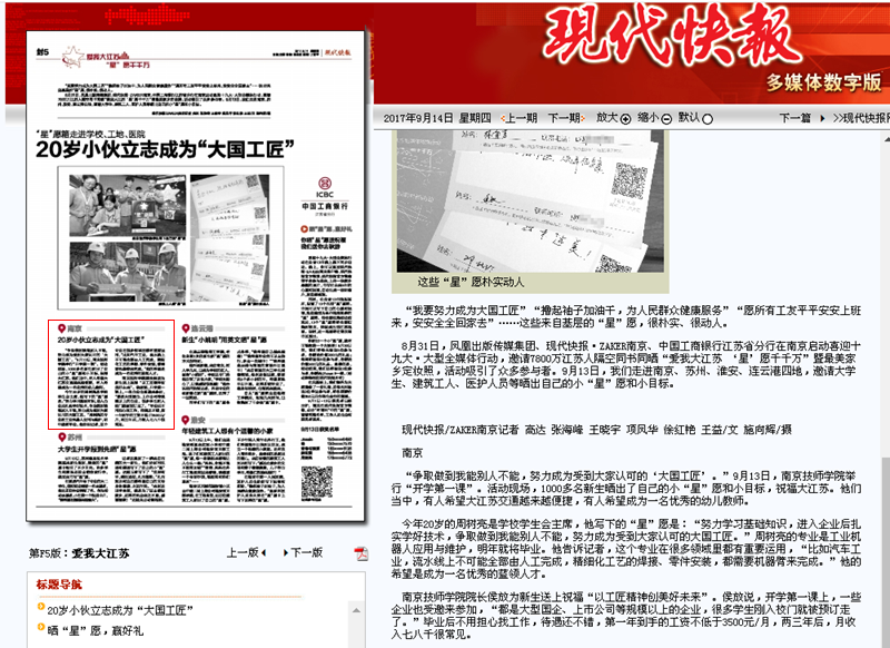 《现代快报》-封5 20岁小伙立志成为“大国工匠”