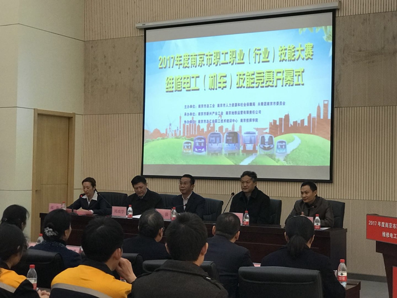11月21日,2017年度南京市职工职业(行业)技能大赛维修电工(机车)技能竞赛开幕式在我院隆重举行。市总工会党组书记孙强、市人力资源和社会保障局巡视员周政学、团市委副书记王慧、南京地铁集团有限公司党委书记黄晓东、南京技师学院党委书记张金梅等领导以及来自各参赛选手及领队、工作人员等近60人参加了本次开幕式。