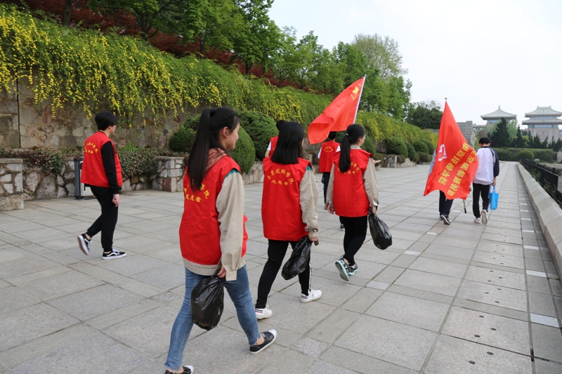 仪式结束之后,我院团员代表穿上志愿者服,在雨花台烈士陵园开展环境保护宣传、倡导文明祭奠的志愿服务工作。