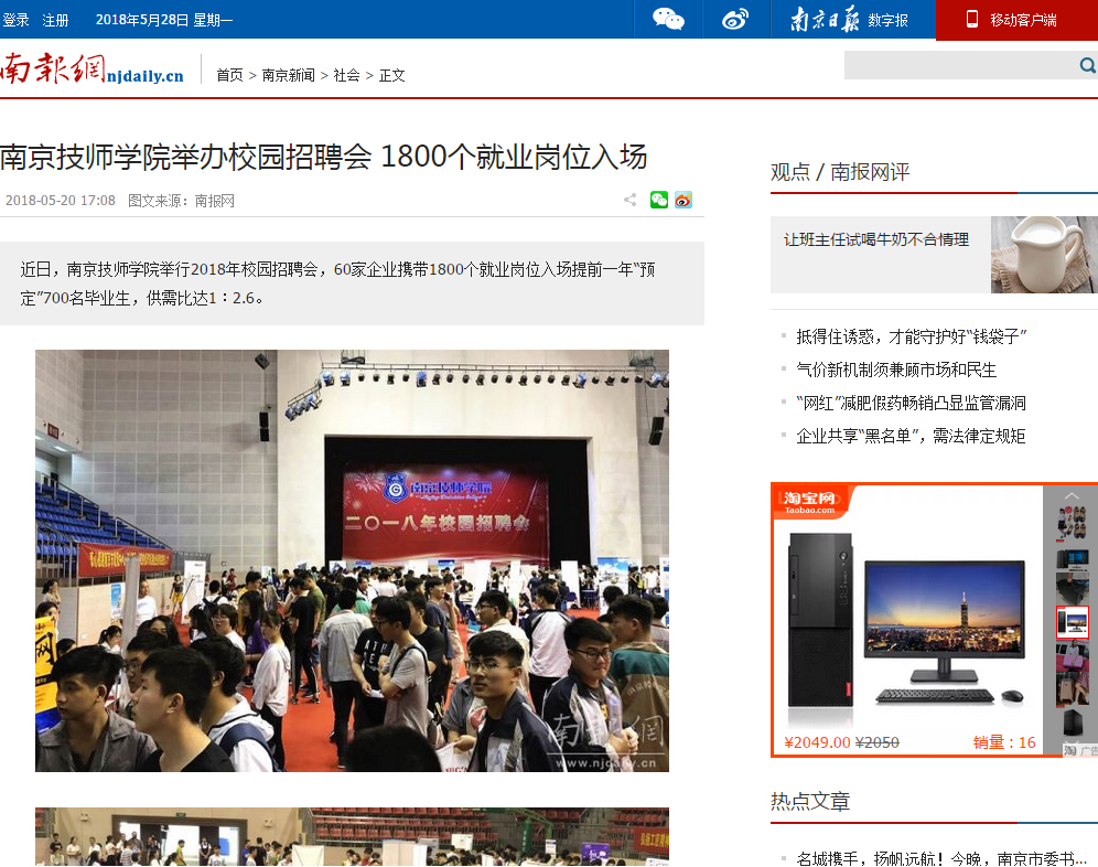 《南报网》-南京新闻社会栏目-南京技师学院举办校园招聘会 1800个就业岗位入场