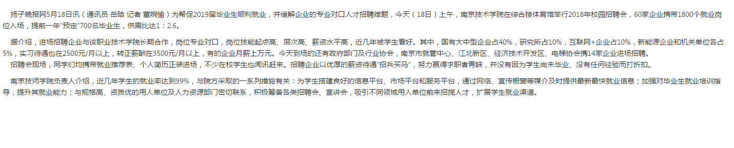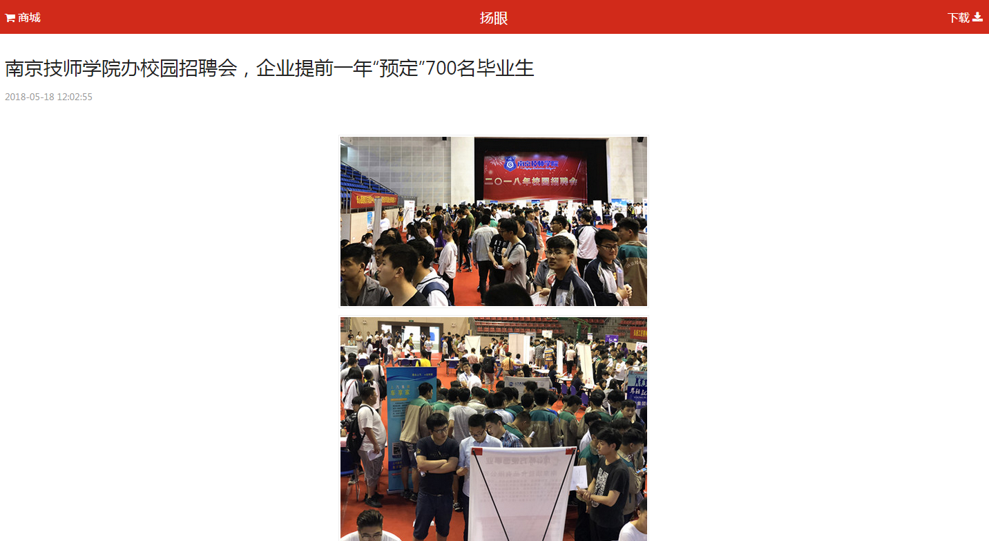 《扬眼》-南京技师学院办校园招聘会,企业提前一年“预定”700名毕业生