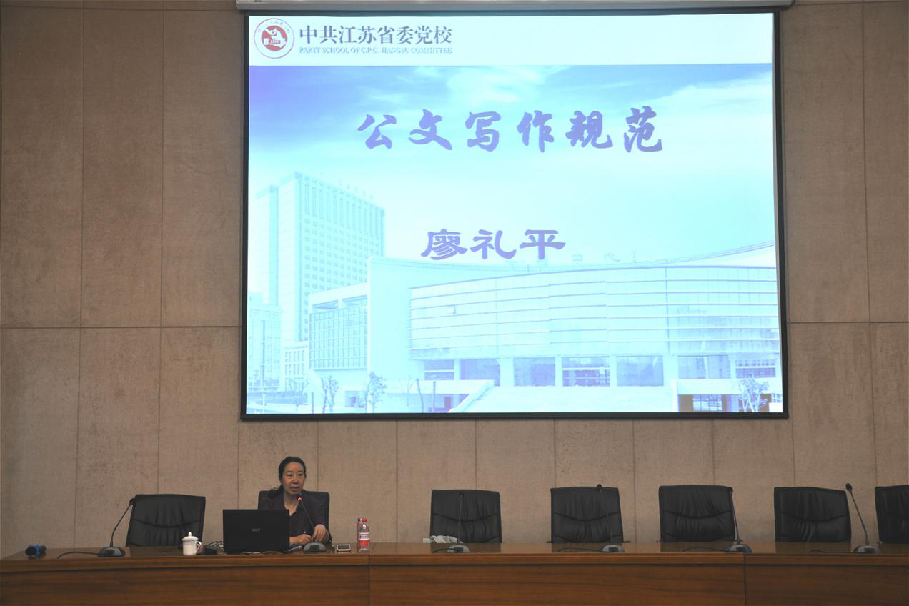 为进一步提高学院教职工公文写作水平,规范公文行文格式,提升公文写作质量,525下午,我院特邀江苏省委党校教授廖礼平开设公文写作规范讲座。讲座由副院长王杭贵同志主持。在校院领导、中层干部、行政工作人员(包括各系部行政工作人员)、各教研组组长、语政德教研组成员以及相关教职工参加了此次讲座。