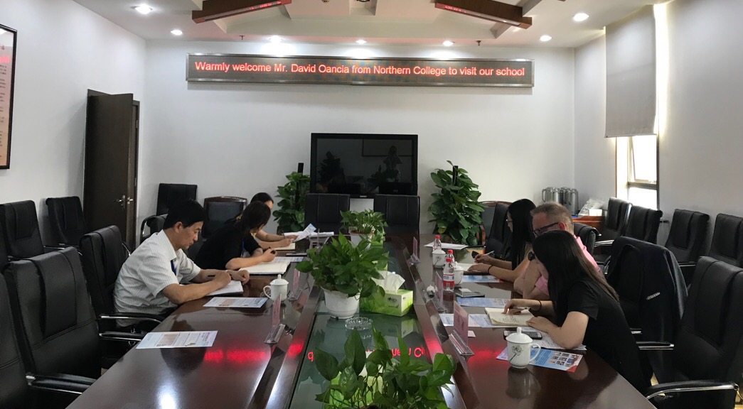 6月7日下午,加拿大北方应用理工学院国际部主任Mr.David Oancia和北京办公室项目管理部主任于双双、助理冯颖一行到访我院,就“中加国际班”项目及Smrt英语课程开展情况进行研讨交流。副院长王杭贵、国际合作办公室和基础部负责人及相关人员参加研讨。