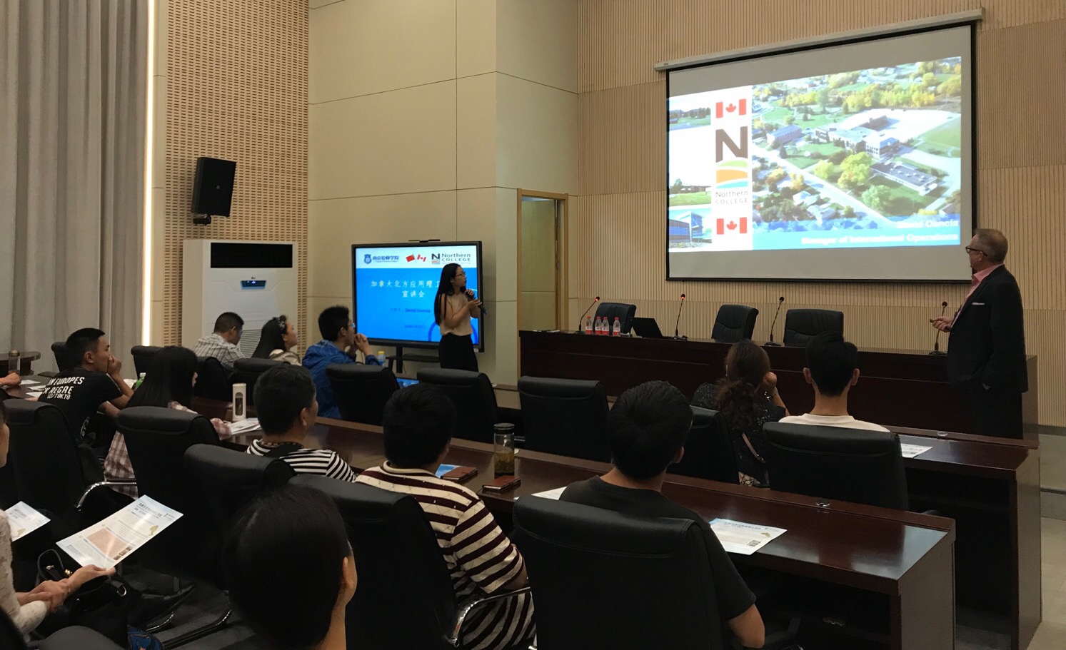 研讨交流结束后,加方在我院举行招生宣讲会,与到场的同学和家长开展沟通与交流。现场气氛热烈,同学及家长们就留学签证、学习生活费用、语言学习、专业选择等方面积极提问,加方一一给予解答。
