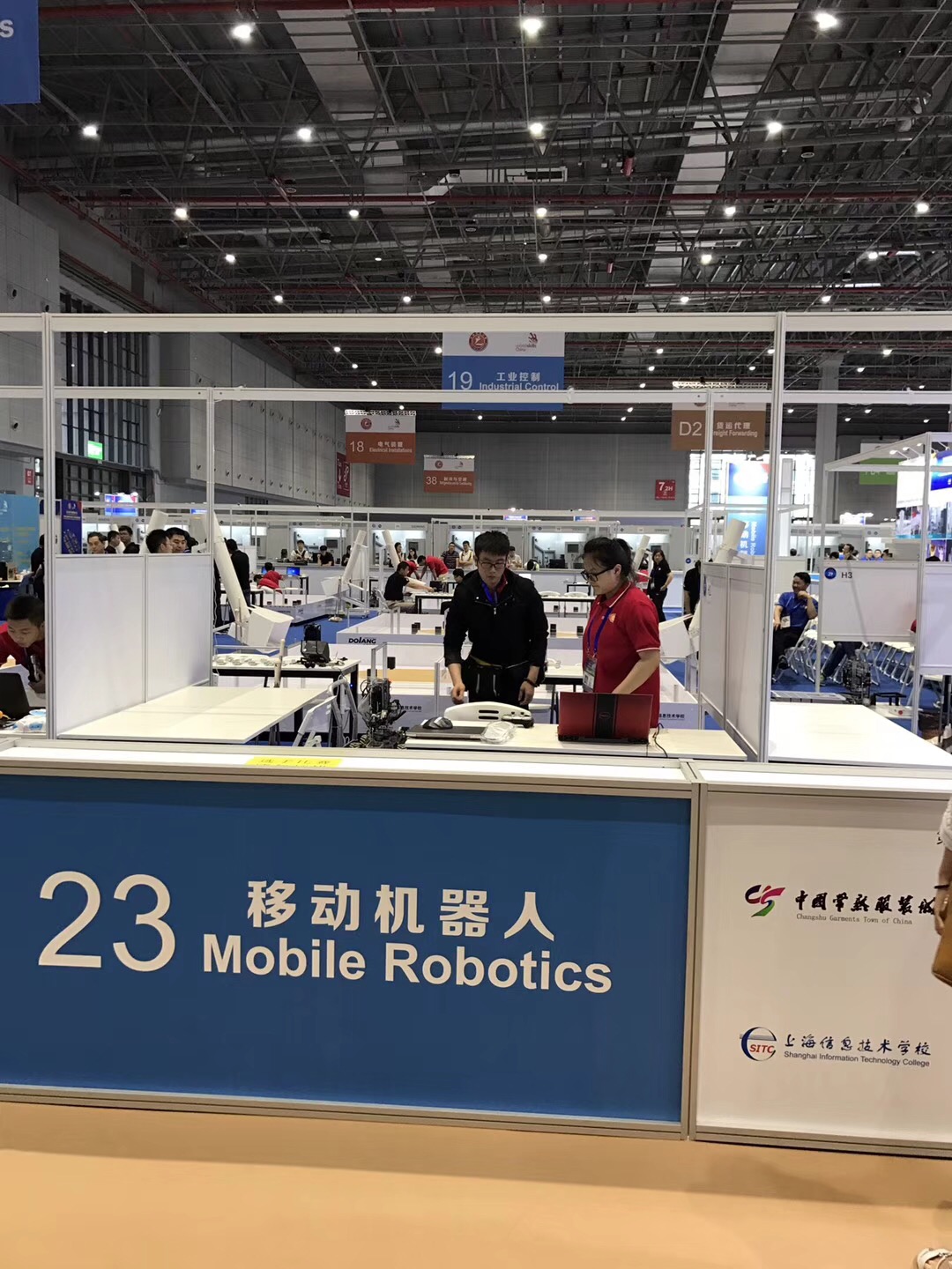 移动机器人项目两组选手(电气工程系王志玲、金旭,张林淇、田权生四名同学)在教练徐才广、刘人豪,许俊麒三位教练的带领下,参加了移动机器人项目的角逐,最终夺得全国第一、二名,创造了该项目国家级选拔赛中一个学校包揽前两名的历史性纪录。