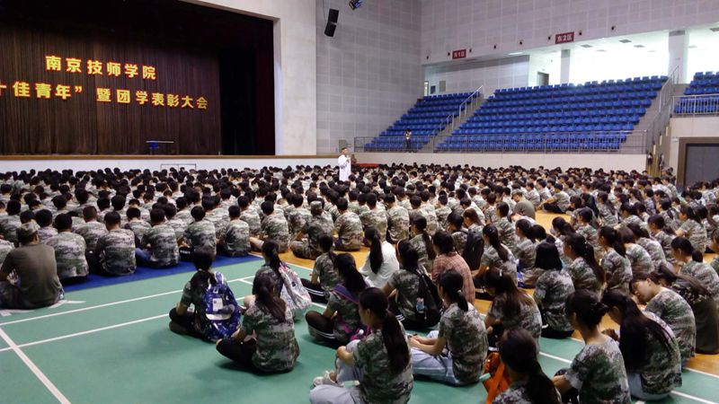 8月26日下午,2018级新生军训开营式在综合楼体育馆内举行,为期2周的艰苦军训正式拉开序幕。8月29日上午,南京市疾病预防与控制中心专家吴少龙主任应邀前来为2018级新生开展了健康安全知识讲座。