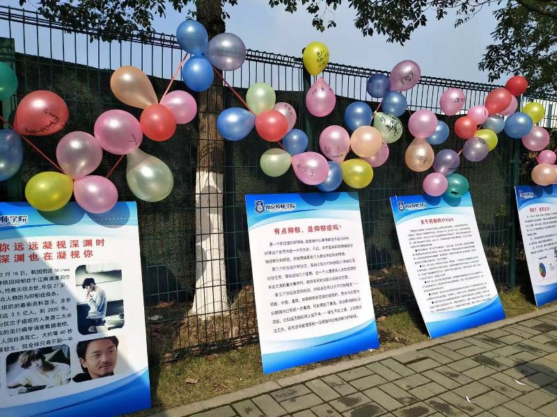 我们通过广场心理咨询活动的方式向学生宣传普及抑郁症的基本知识,告知学生抑郁症的表现,如何治疗抑郁症以及如何正确对待抑郁症患者。同时,我们在活动现场准备了希望气球,请参与活动的同学签名并留下祝福语。活动中,不少同学表示自己曾有过抑郁的感受,此次活动中学到的知识对自己有非常大的帮助!