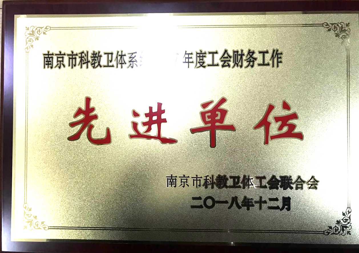 2018年,我院工会在院党委的正确领导下,在院工会主席和全体工会委员和经审委员会委员的共同努力下,以强烈的责任心和高度的责任感,努力工作,辛勤付出,工会财务工作规范化建设得到不断加强,工会财务工作取得了显著成绩。根据《南京市工会财务会计管理规范化考核评比办法》和《南京市科教卫体联合会工会财务工作竞赛评比办法》等文件精神,经过评比,我院工会被授予南京市科教卫体系统“工会财务工作先进单位”荣誉称号。