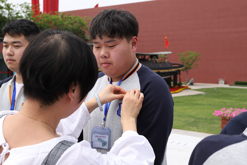 纪念馆广场上,同学们慷慨激昂地唱起国歌。院团委副书记王辉老师致辞,告诫学生不忘历史,传承遗志,勤学技能,不负青春。叶俏瑜老师现场开讲五四运动主题微团课,重温奋斗历史,传播革命精神。接着,团员代表陈晔洋同学进行团旗下演讲,高端同学带领全体学生进行面向团旗宣誓。两位老师为新团员佩戴团徽,全体合唱共青团团歌。最后,同学们有序参观了渡江胜利纪念馆,并写上对本次活动的感悟张贴在展板上。