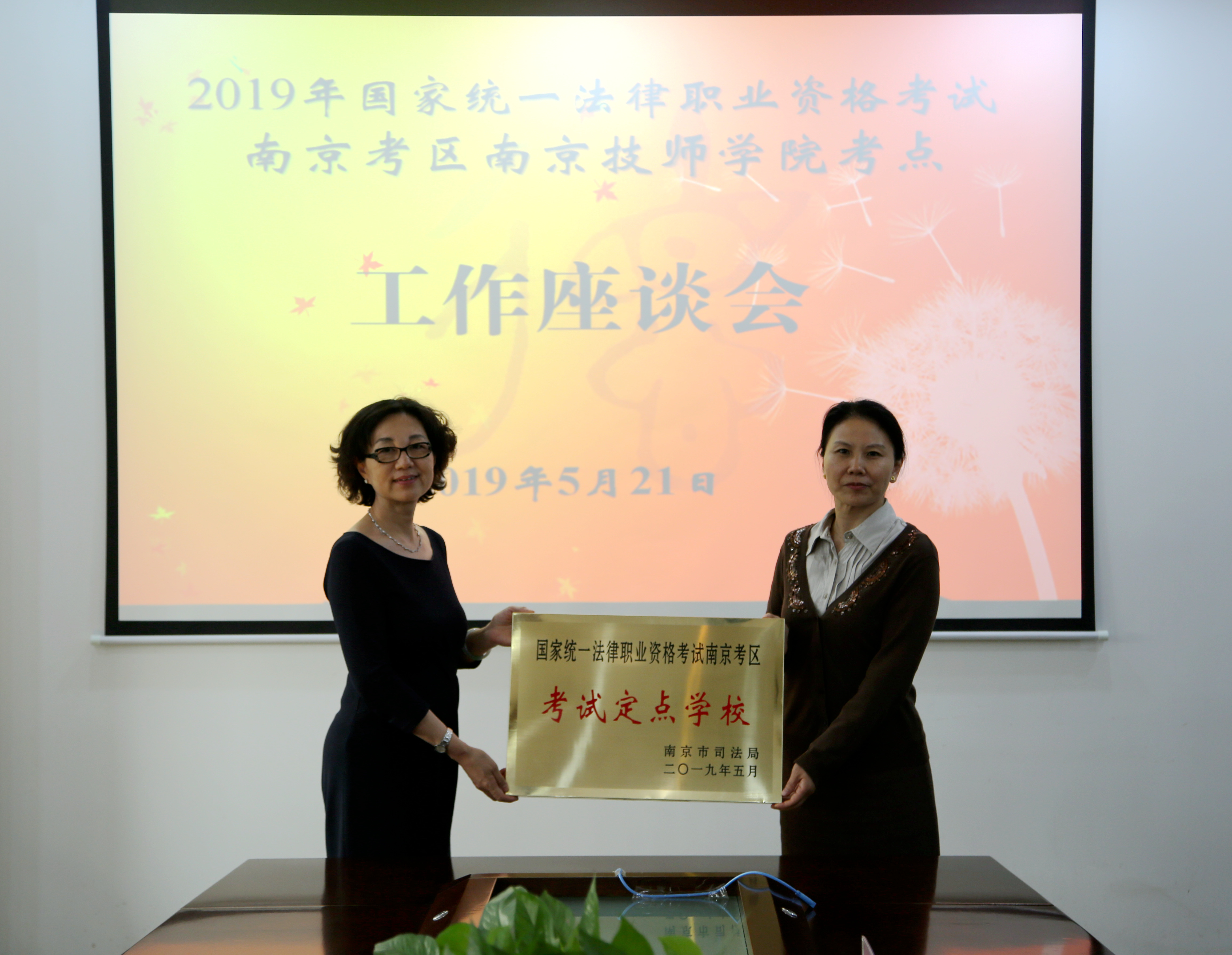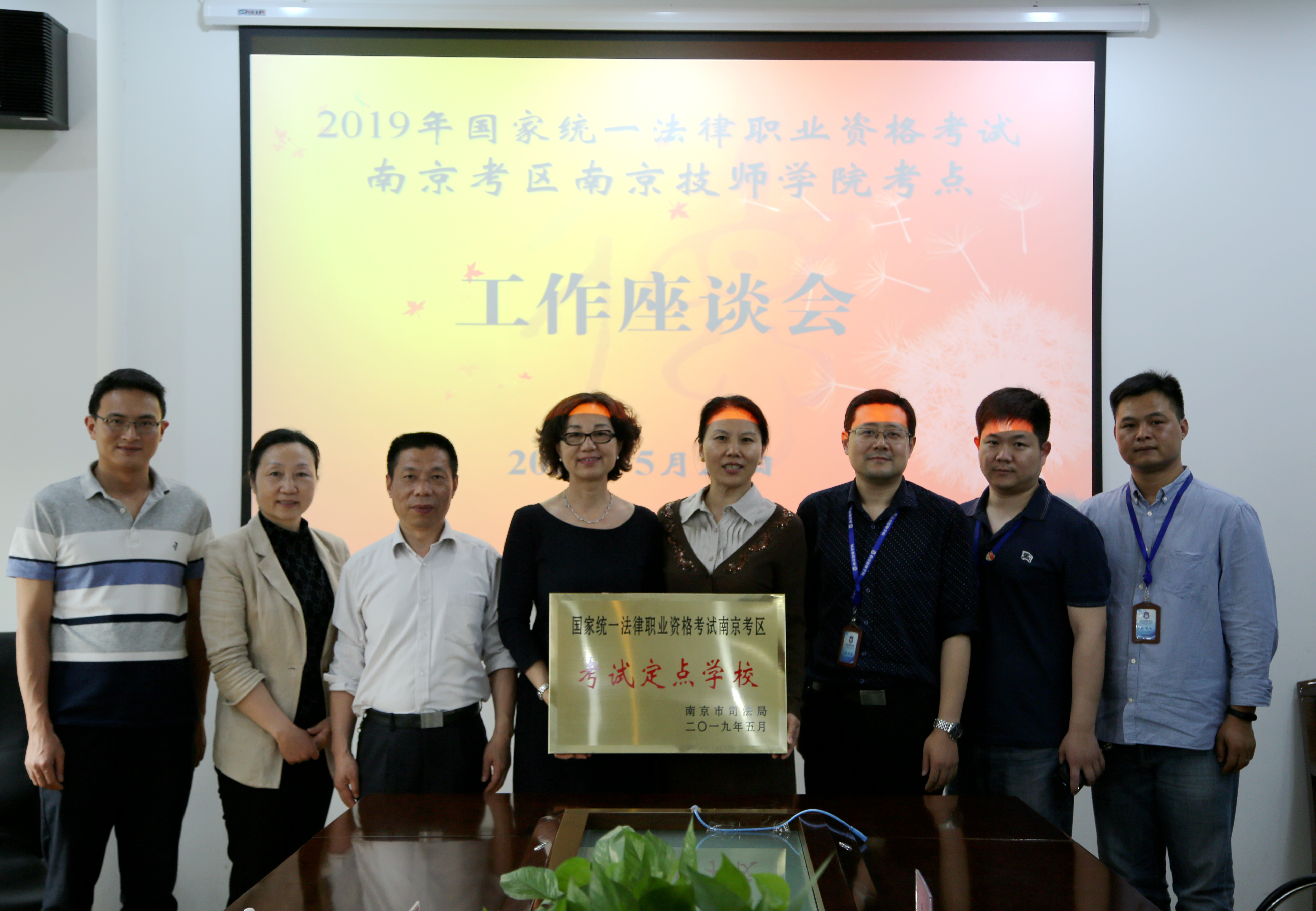 5月21日,2019年国家统一法律职业资格考试南京考区南京技师学院考点工作座谈会在我院召开。南京市司法局巡视员苏郑、司法考试办公室处长温金富、我院党委书记张金梅、副院长朱胜强及相关负责同志参加会议。