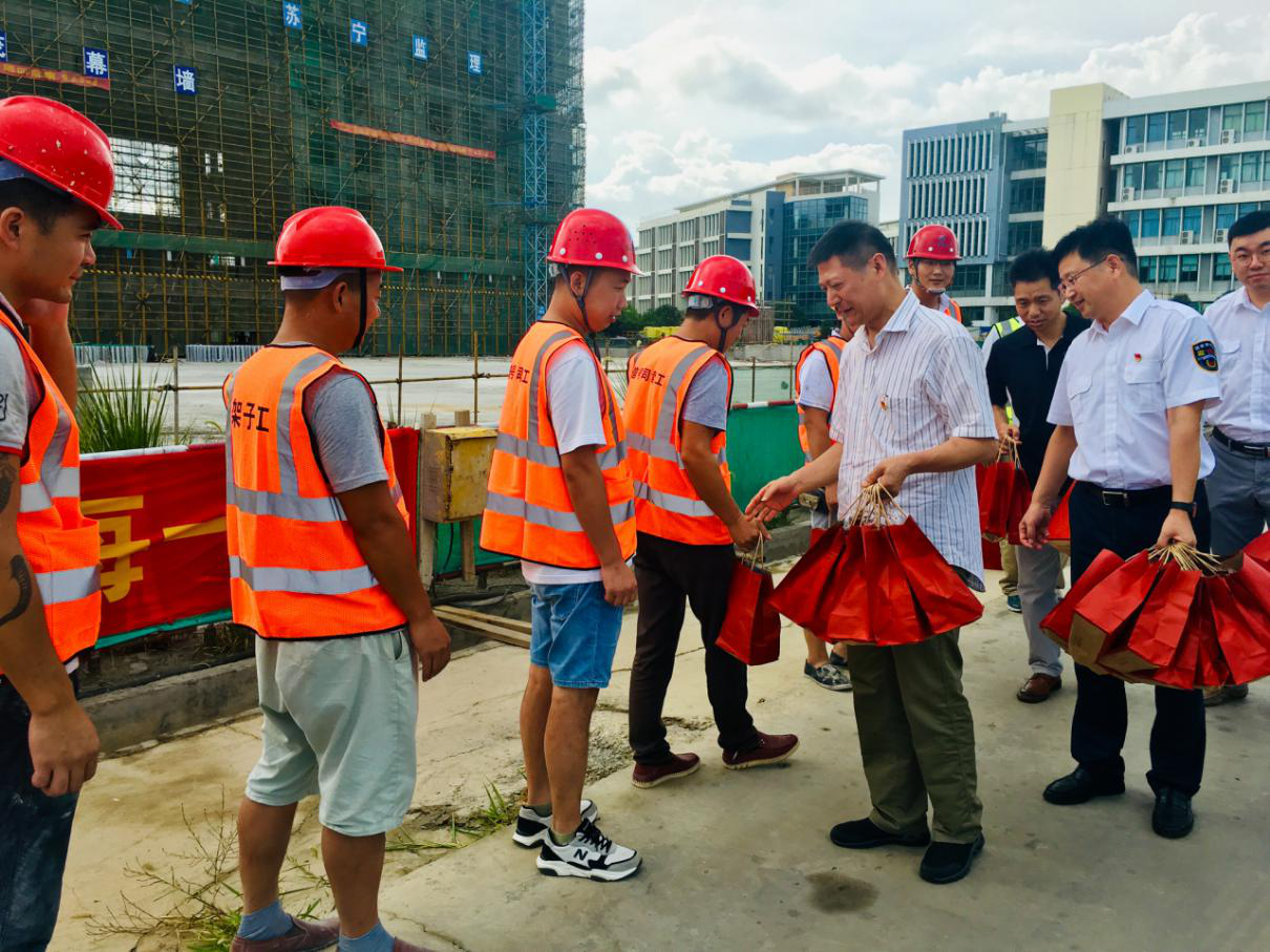 连续多日的高温天气给建筑施工带来了极大的考验,农民工的工作情况也牵动着各级领导的心。89日下午,市人社局巡视员周政学,劳动监察局局长费宗杰、副调研员李建华以及栖霞区人社局、区监察大队等有关领导来我院二期工程施工现场开展夏季高温慰问走访调研活动,我院党委书记张金梅、副院长朱胜强陪同调研。