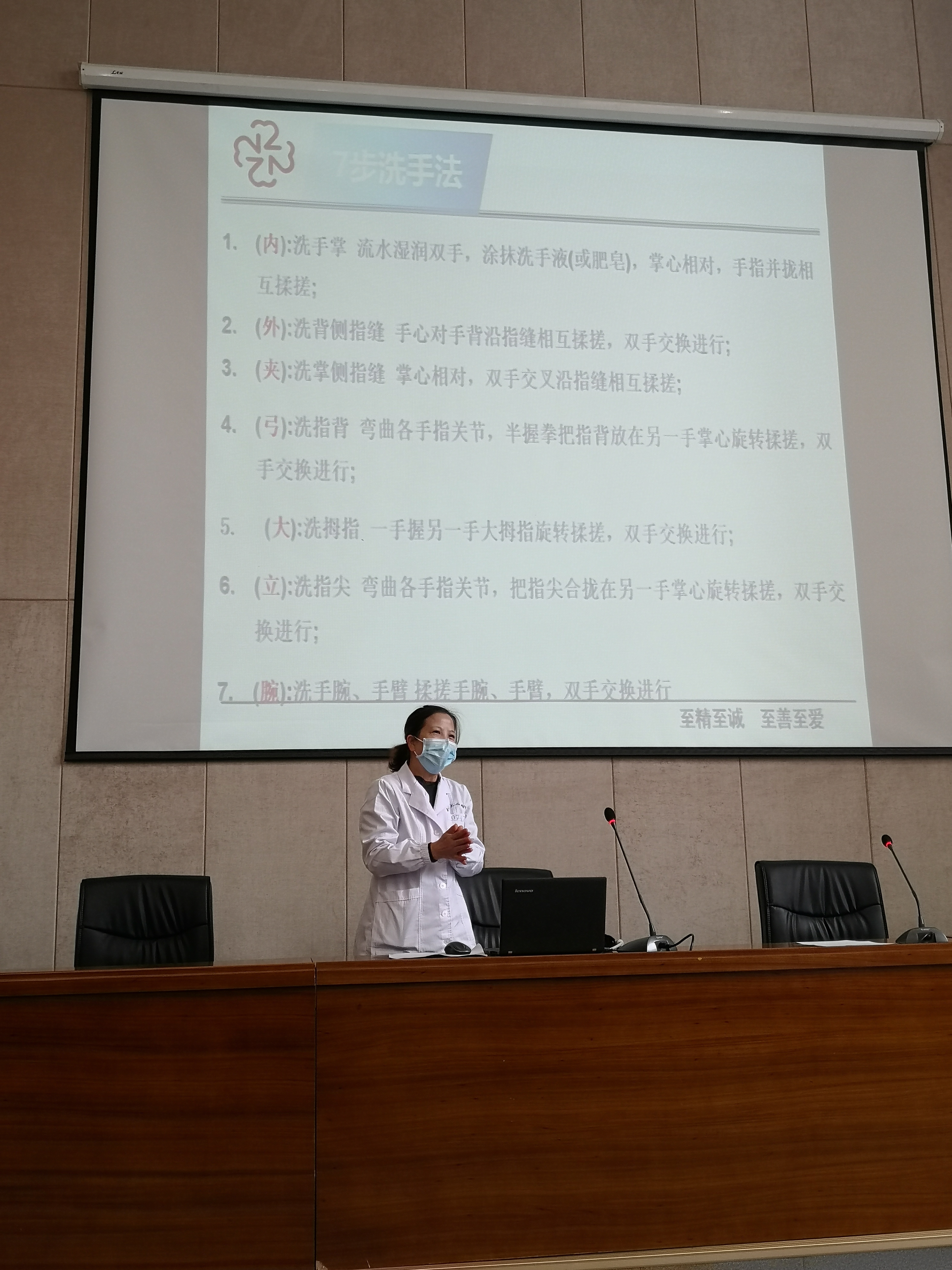 培训讲授了传染病的相关知识和三级预防标准,围绕开学前准备、开学后具体措施、疑似症状应急处置方面,提出要依法防控、精准施策、科学防控。培训专家还用口诀、图示和现场演示等方法详细讲解了7步洗手法、各类口罩的佩戴方法、体温测量的方法、教室宿舍等环境的消毒方法、隔离衣和防护服的穿戴方法、发热学生应急处置、隔离点管理等,培训丰富实用,为我院疫情防控工作提供了更好的工作思路和更有效的工作方法。