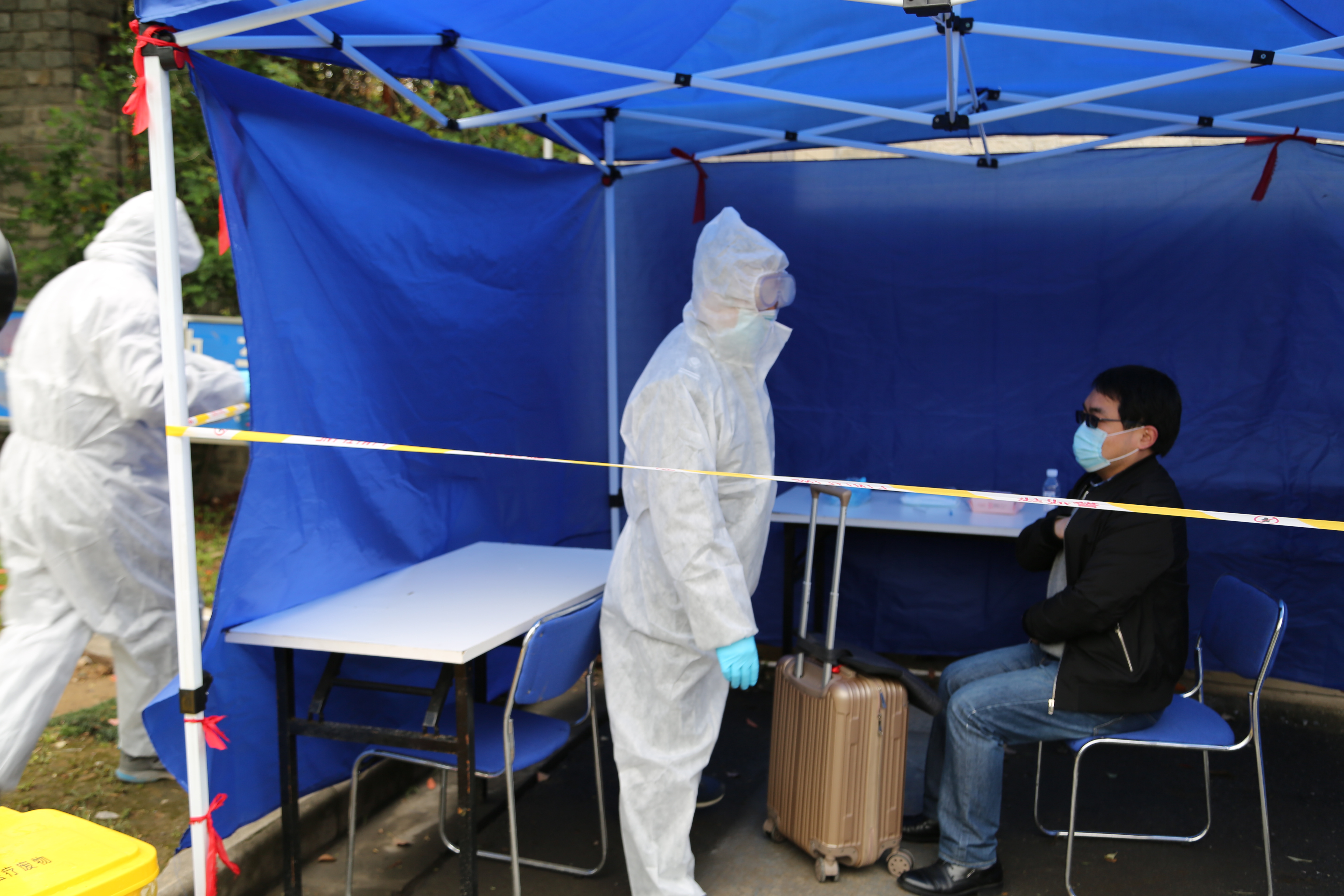 物管阿姨询问发热学生情况