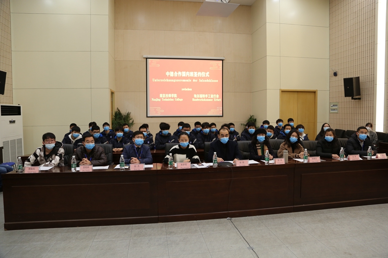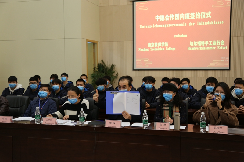 1月15日下午,我院与德国埃尔福特手工业行会成功举行了2019级中德合作国内班线上签约仪式。院长侯放、副院长赵杰,国际合作交流办公室、电气工程系等部门有关负责同志,德国埃尔福特手工业行会会长Thomas Malcherek、国际项目主管Patricia Roth、行会培训中心负责人Frank Oelze以及常州雅堂德中教育投资咨询有限公司总经理张琳,德国德智教育投资咨询有限公司总经理张皓,2019级中德国内班全体学生等参加了此次线上签约仪式。