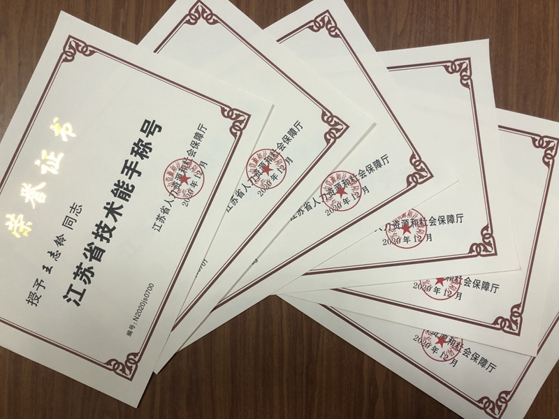 近日,省人社厅联合多部门通报表扬在第一届全国技能大赛获奖选手和为参赛工作作出突出贡献的单位及个人,并给予相应物质奖励,我院7名获奖选手及教练获通报表扬。其中,王志玲等5名选手、董昱麟主教练被授予“江苏省技术能手”称号;田权生被授予“江苏省五一劳动奖章”和“江苏省青年岗位能手”称号;我院获得“突出贡献单位”荣誉称号。