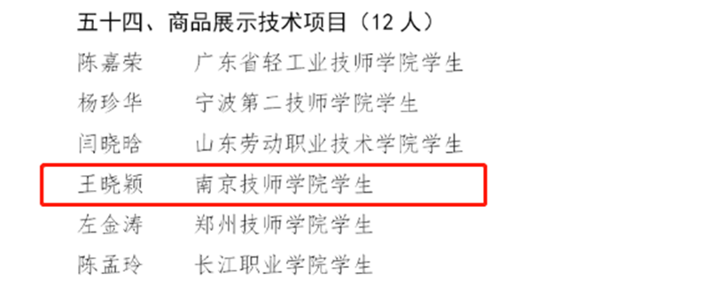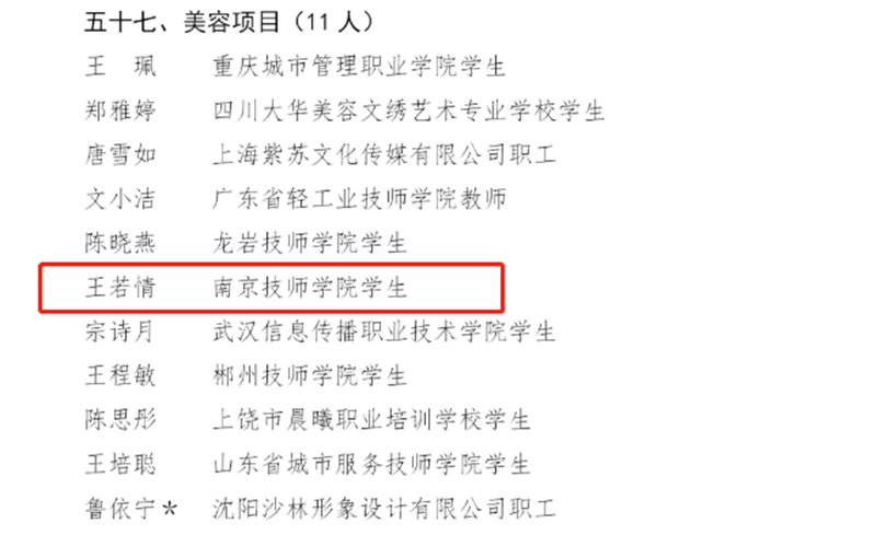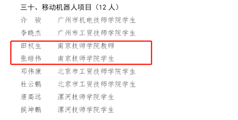 根据中华人民共和国第一届职业技能大赛世赛选拔项目选手比赛成绩及第45届世界技能大赛集训最终排名和世界技能组织对第46届世界技能大赛参赛选手年龄的要求,人力资源社会保障部于近日正式公布第46届世界技能大赛中国集训队名单,南京技师学院在移动机器人、水处理技术、商品展示技术、美容4个项目中有5名选手入围。