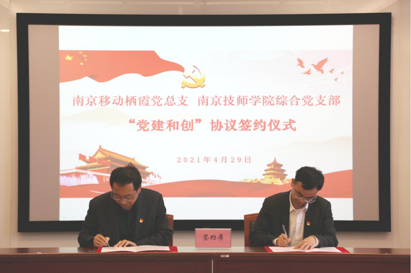 为认真贯彻落实院党委党史学习教育的工作部署,4月29日上午,学院综合党支部与南京移动栖霞党总支举行了“党建和创”签约仪式。南京移动栖霞分公司经理兼党总支书记孙晓星、南京移动市场部副经理索珊珊;学院党委书记张金梅,党委副书记、院长侯放,副院长朱胜强,副院长、综合党支部书记徐建华等校企领导出席了签约仪式。