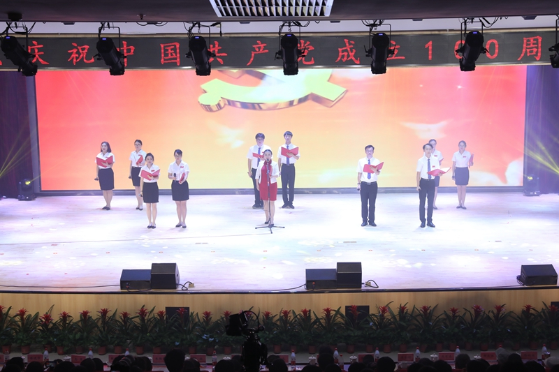 随后,全体人员共赏了师生倾力倾情打造的精彩节目。整场演出以庆祝建党100周年为主题,广大参演者通过大合唱、歌舞、情景剧、诗朗诵等不同艺术形式,将学党史的感悟融入创作,歌颂中国共产党成立百年来的光辉历程。演出在全场合唱《没有共产党就没有新中国》中圆满落幕。