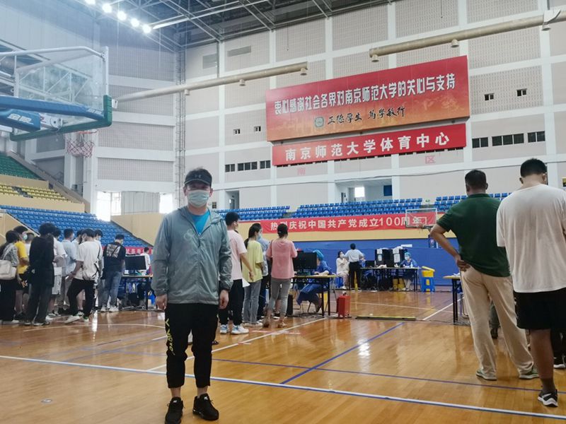 “在抗击疫情的关键时期,我作为一名南京技师学院的教师,坚决不掉队。”王老师主动请缨,加入此次疫苗接种现场工作中。8月23日当天,她早早来到南京师范大学疫苗接种点,积极组织学生及家长登记个人信息、查验苏康码、测量体温,耐心做好引导和解释工作,确保接种现场规范、有序、高效。