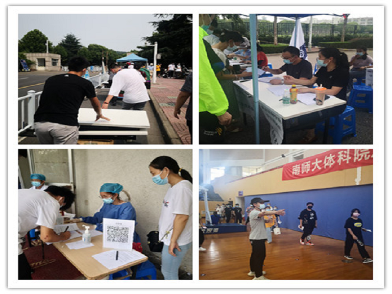 接种当天,在学院副院长俞岚、学工处处长赵越、保卫处处长吴崇海、各系主任的带领下,全院39名教职工志愿者,前往南师大接种点进行现场引导、登记、测温、维持秩序等工作。