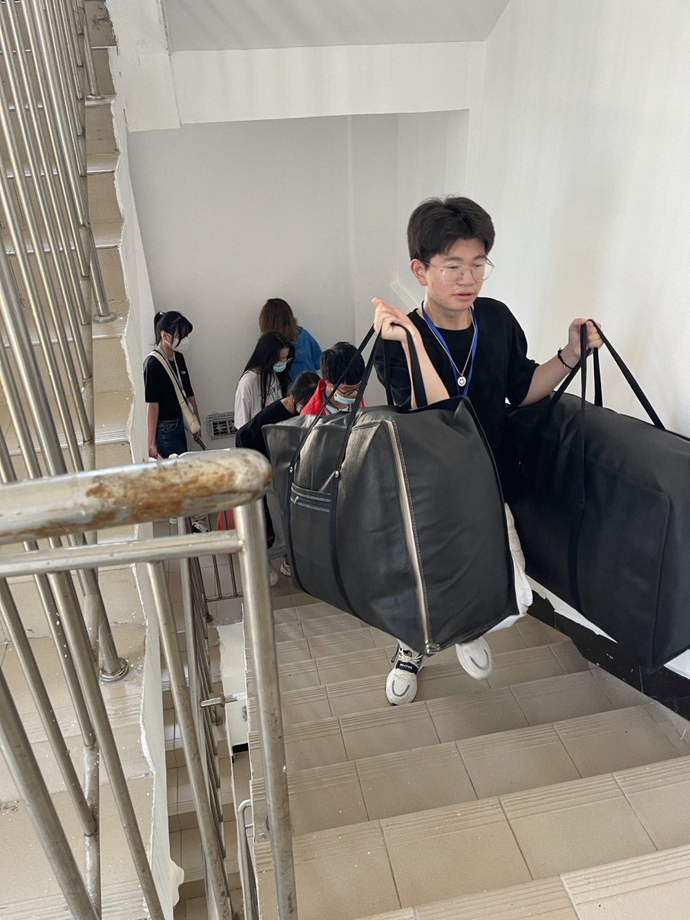 按照疫情防控常态化要求,新生进校均查验“一卡一码一表格”,严格测温、佩戴口罩,有序进入校园。为确保新生报到工作顺利进行,学院领导齐上阵,带领近200名教职工和600余名经过培训的学生志愿者共同为新生入学提供服务。新同学们一进校园,穿着标有各系铭牌马夹的学生志愿者们带着笑脸立刻主动迎上招呼,手拎肩扛行李,一路带着新同学们进入录取所在的班级。办理好入学报到手续后,志愿者们又带领新同学们购买水卡和领取寝室用具,并帮助新同学们一起将行李搬运至宿舍。炎炎烈日,到处都是志愿者们忙碌欢快的身影,汗水湿透了衣服,但他们的脸上却洋溢着学长学姐们特有的骄傲与自信。