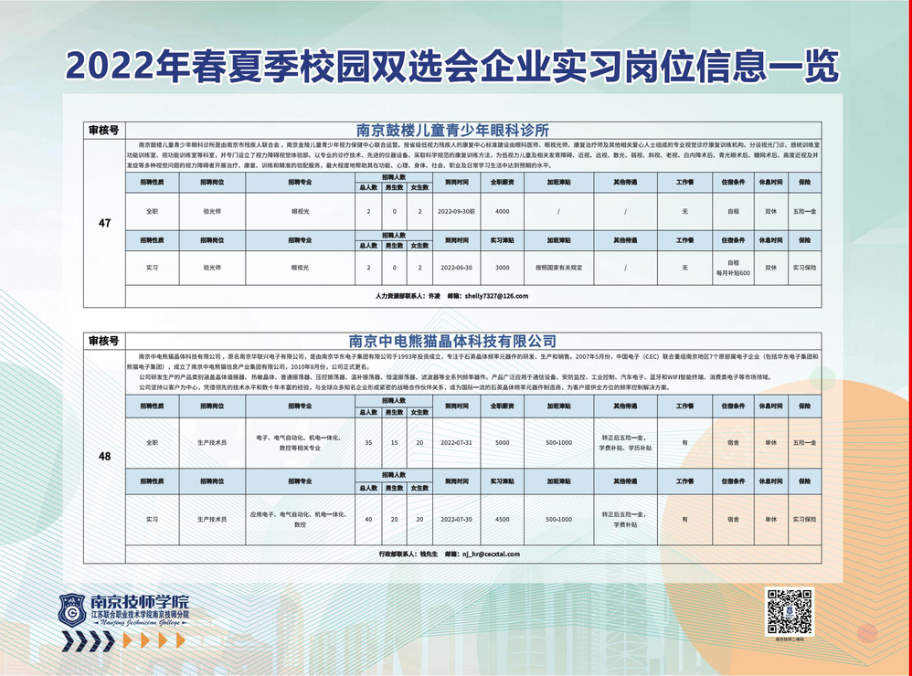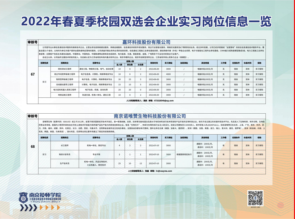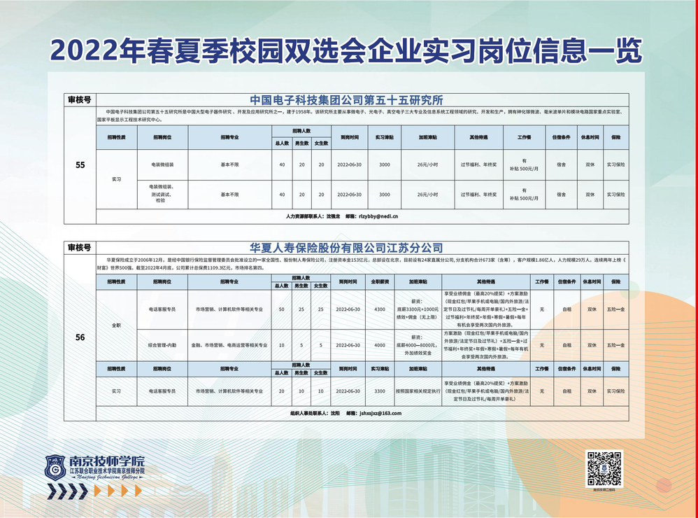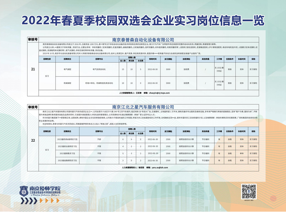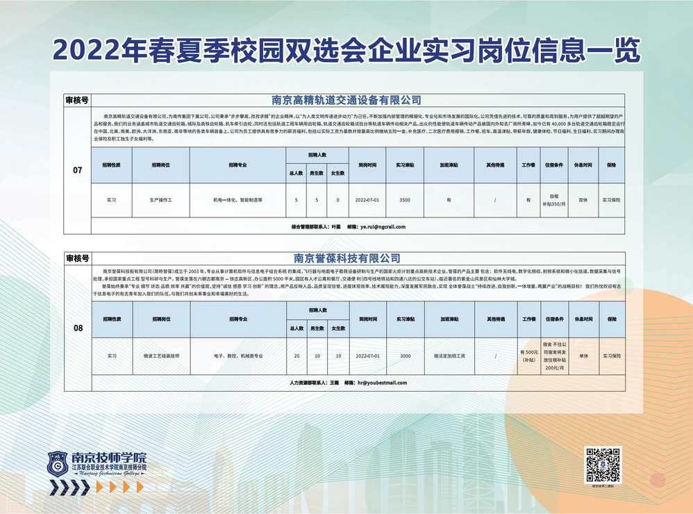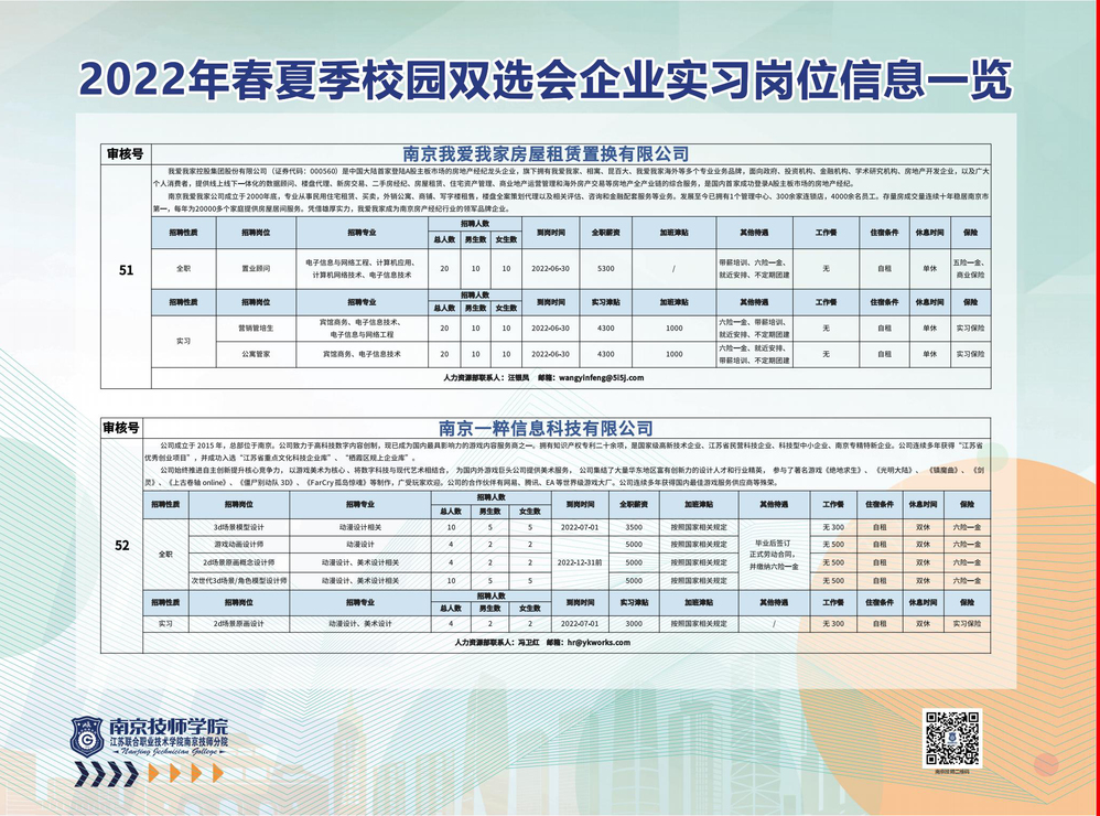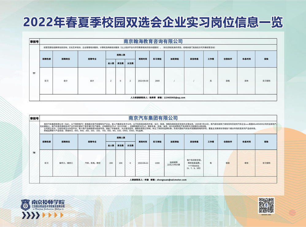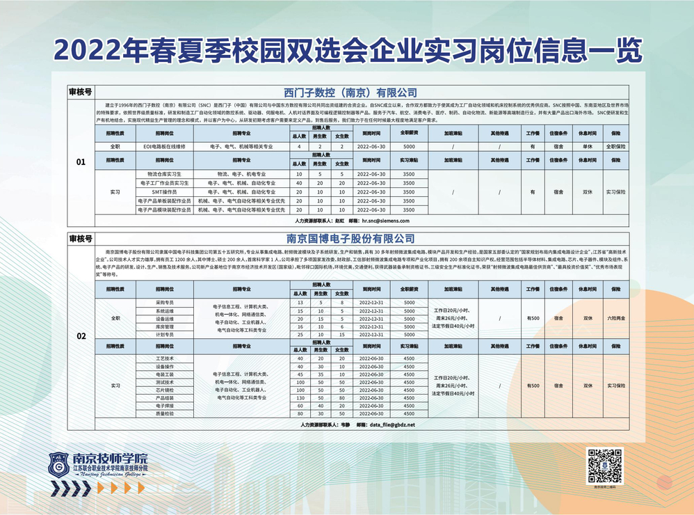 2022年春夏季校园双选会企业实习岗位信息一览