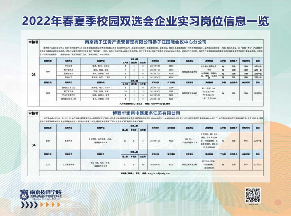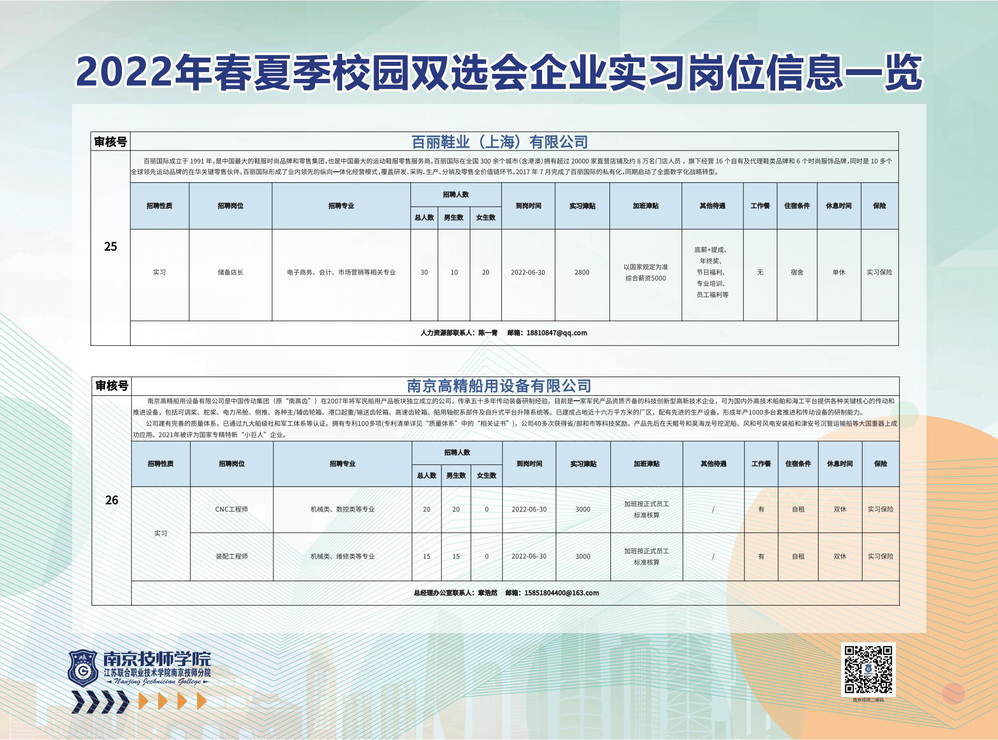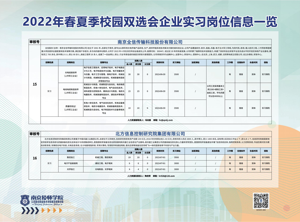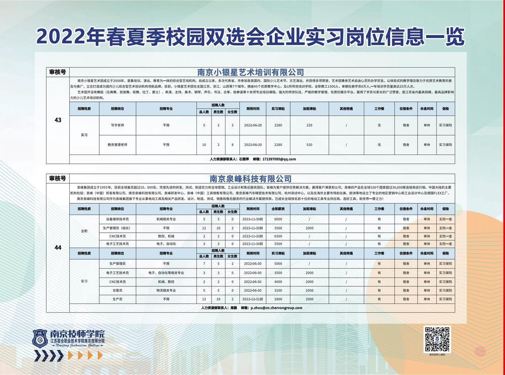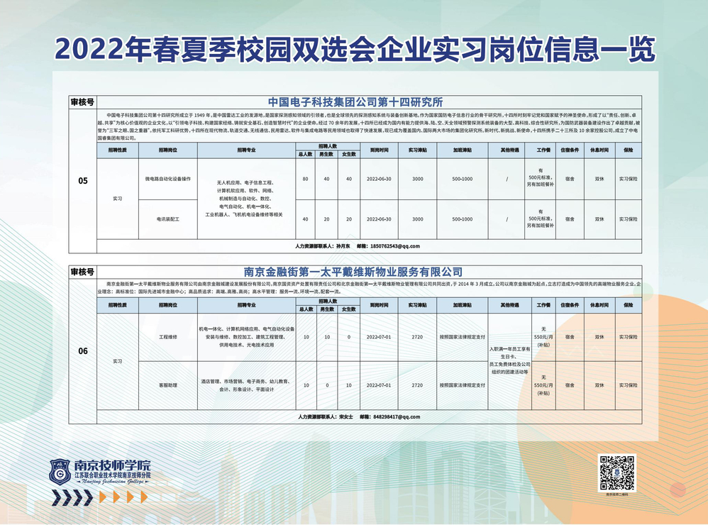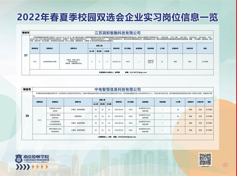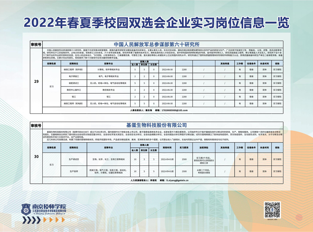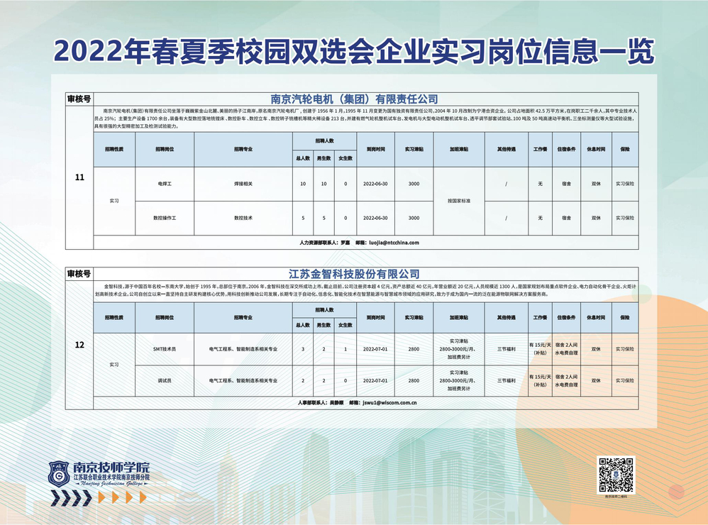2022年春夏季校园双选会企业实习岗位信息一览