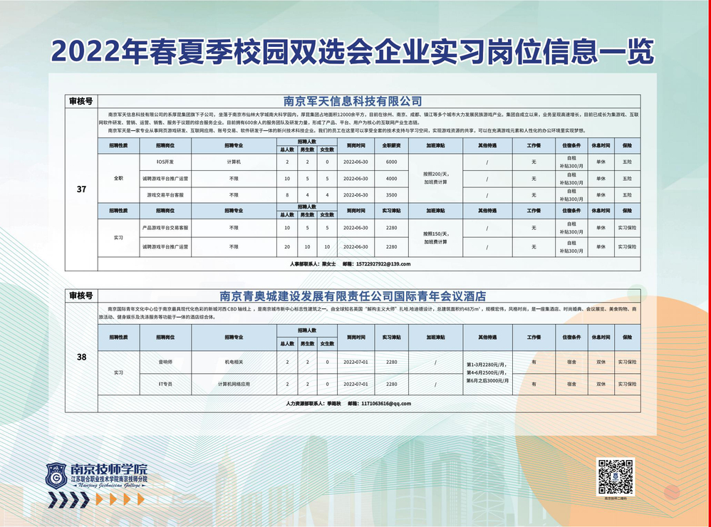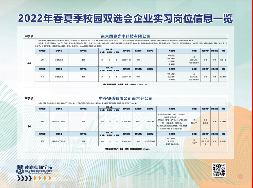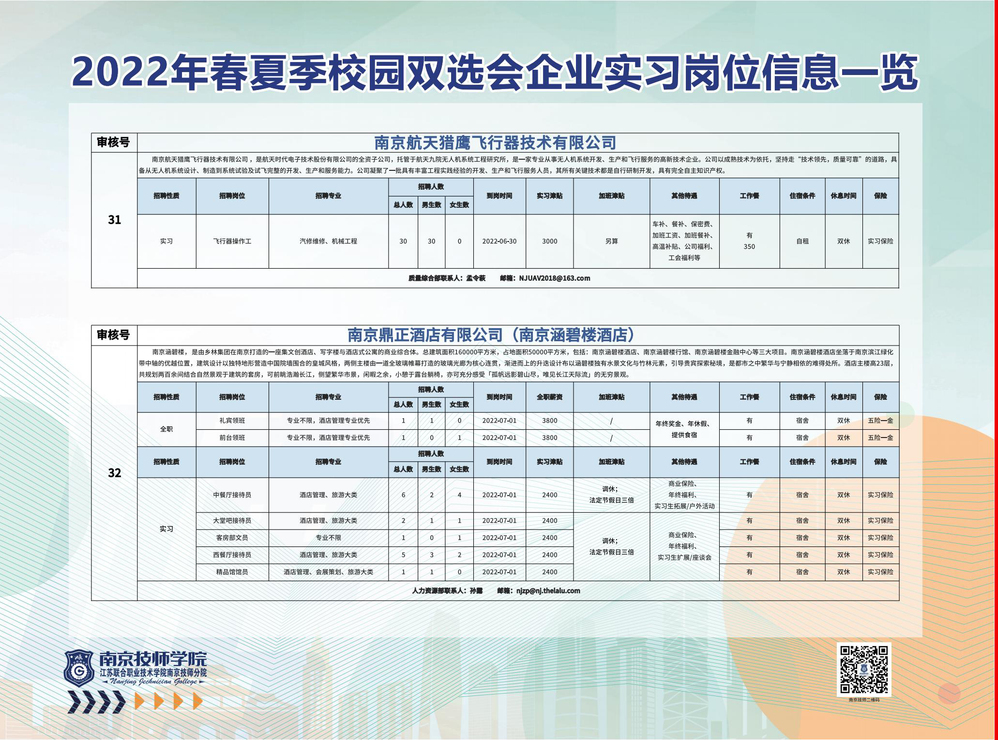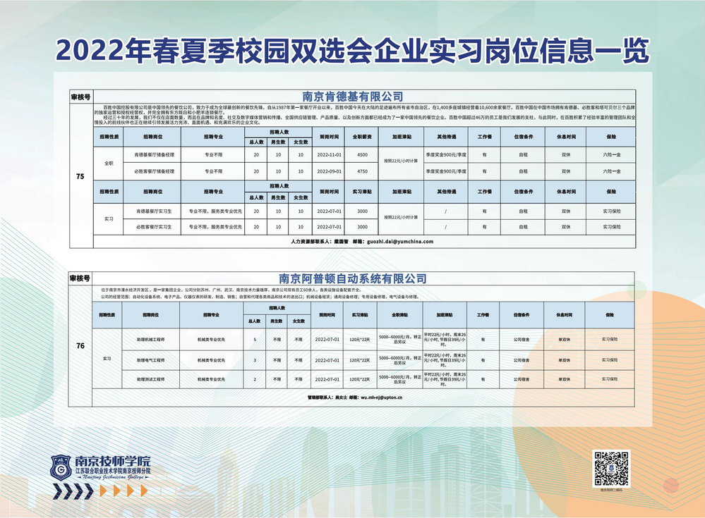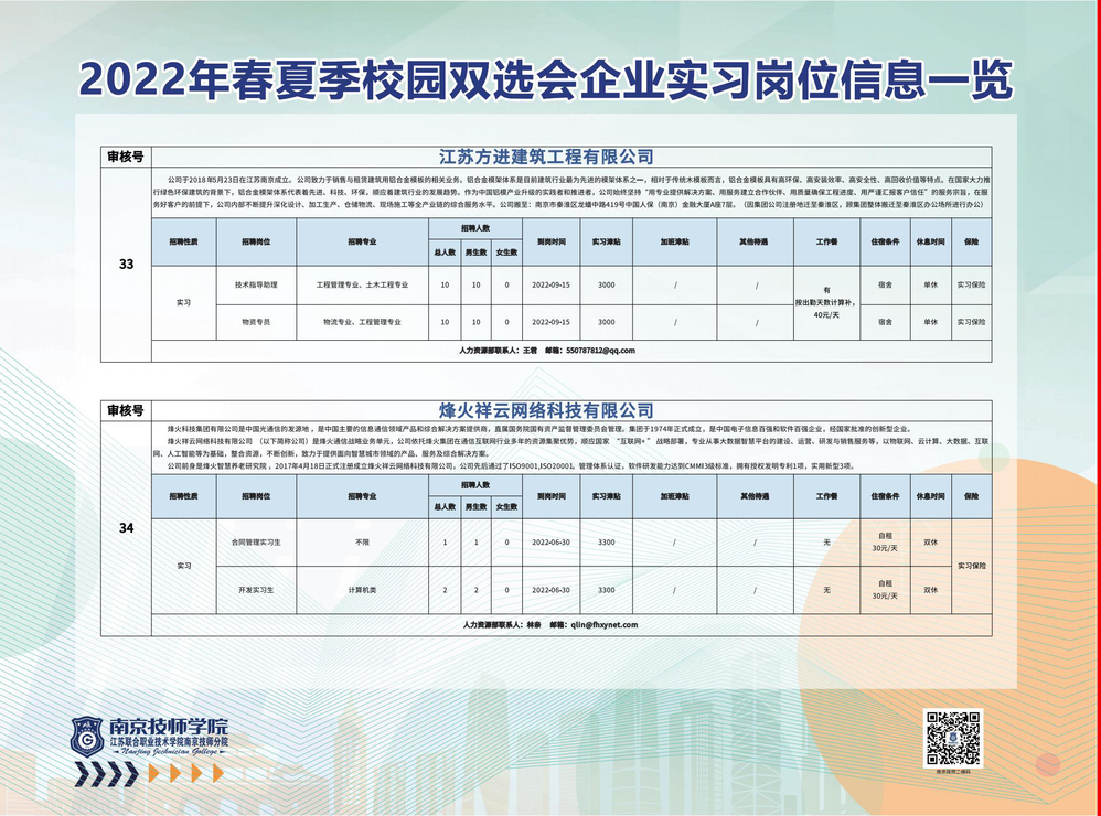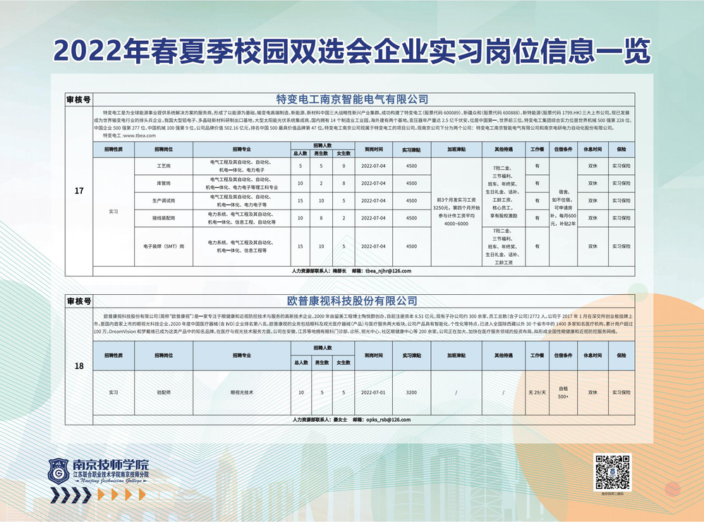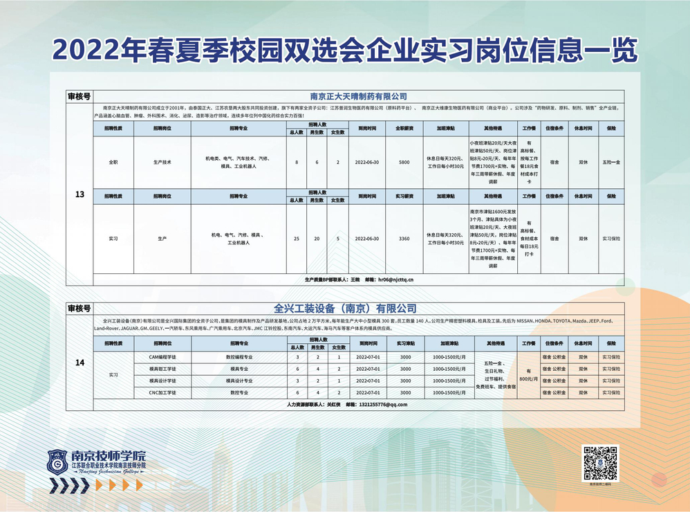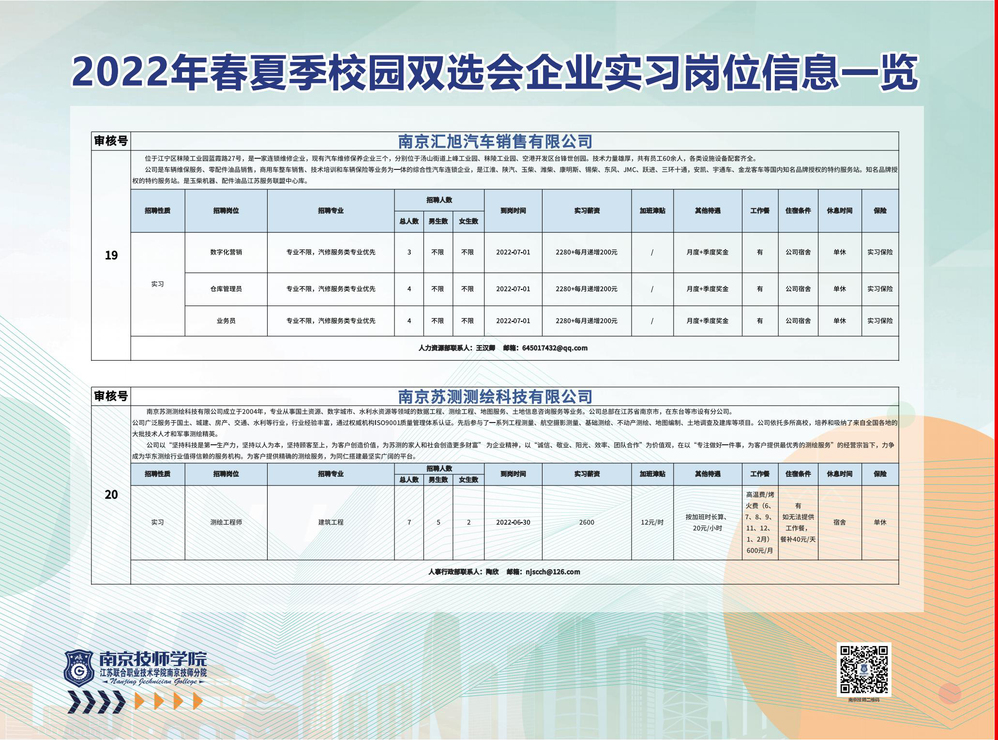 2022年春夏季校园双选会企业实习岗位信息一览