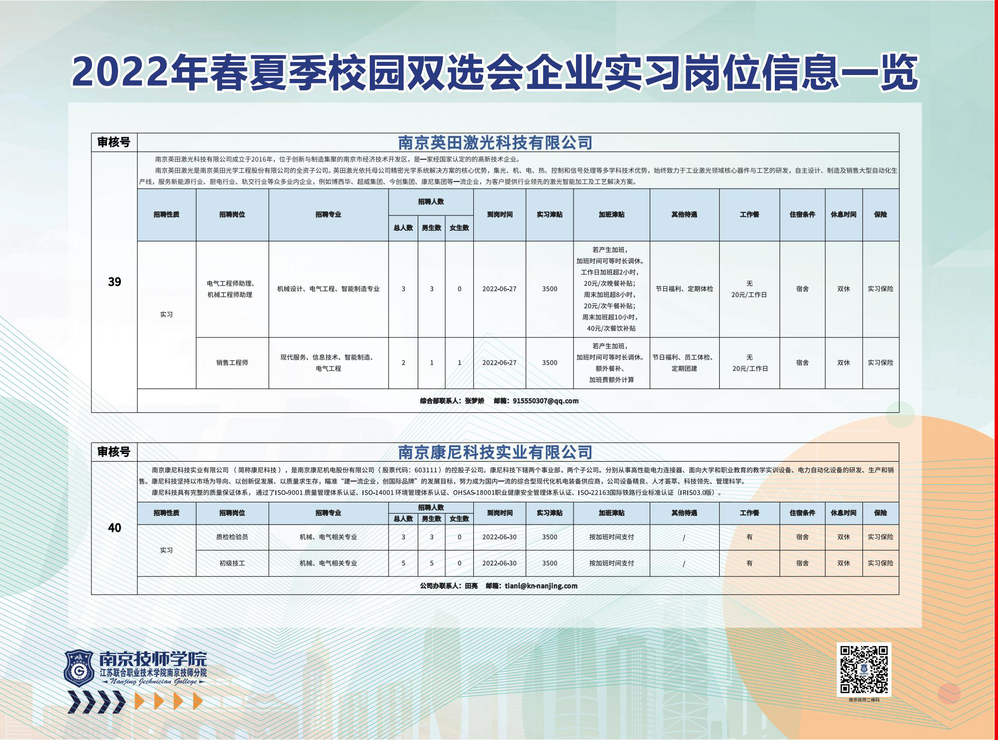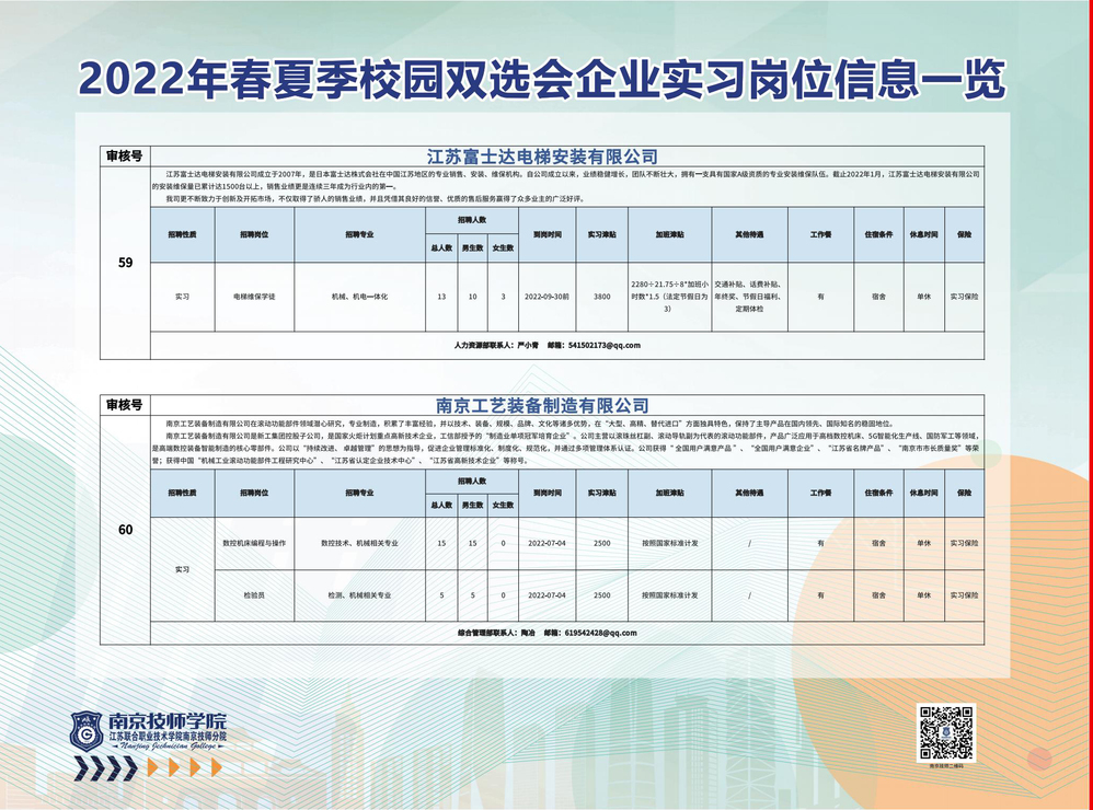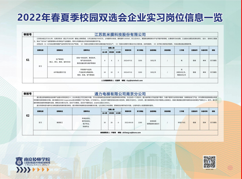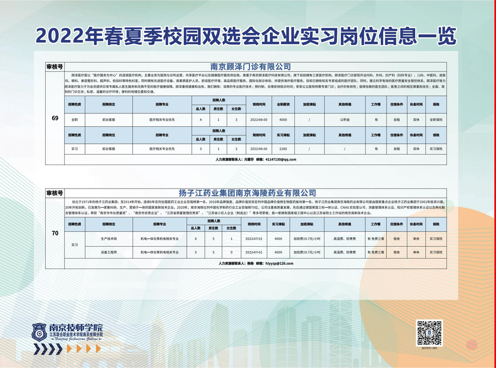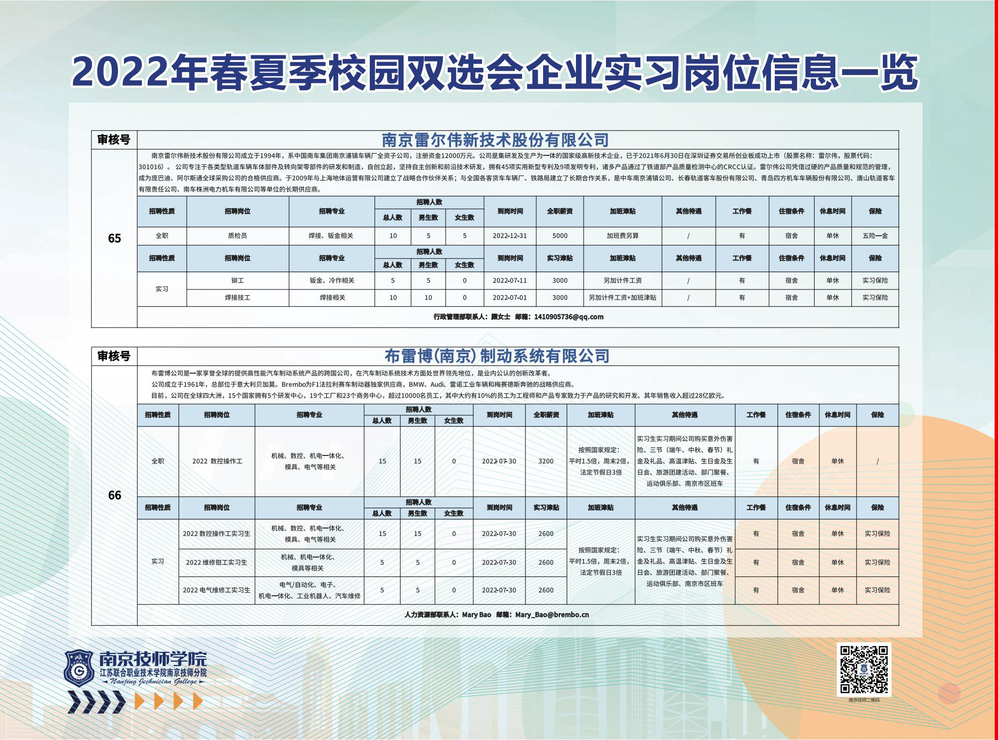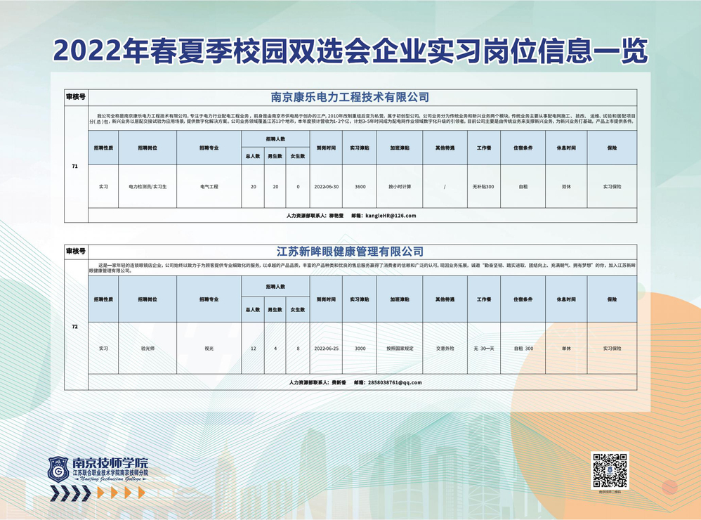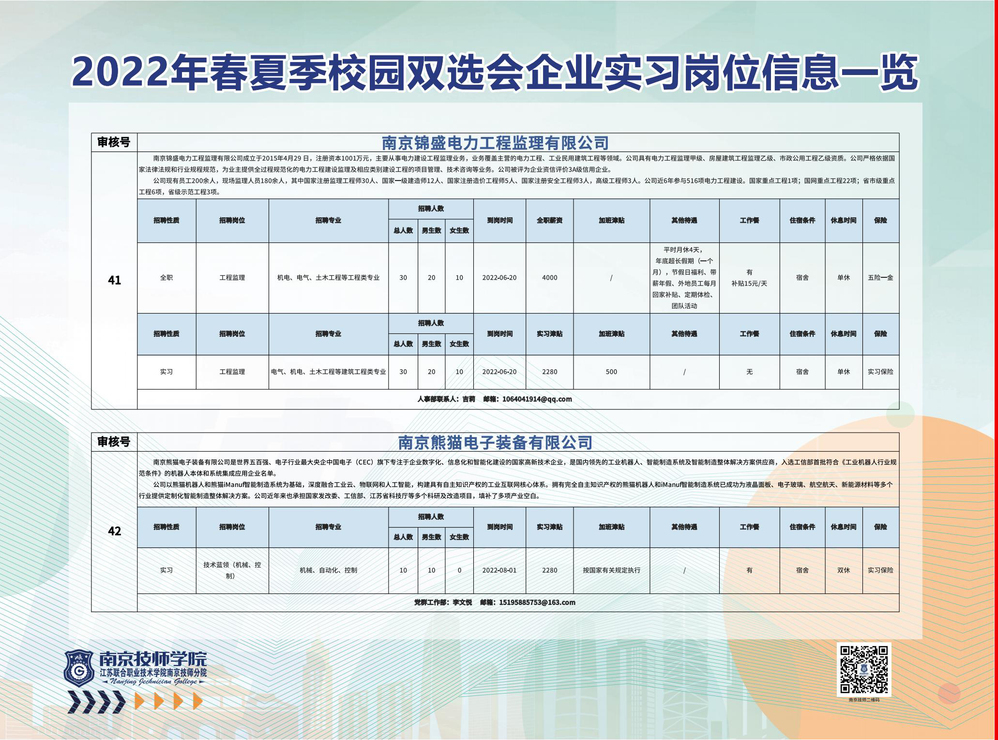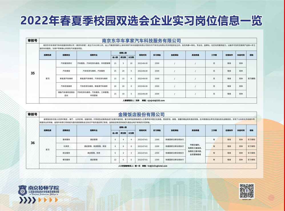 2022年春夏季校园双选会企业实习岗位信息一览
