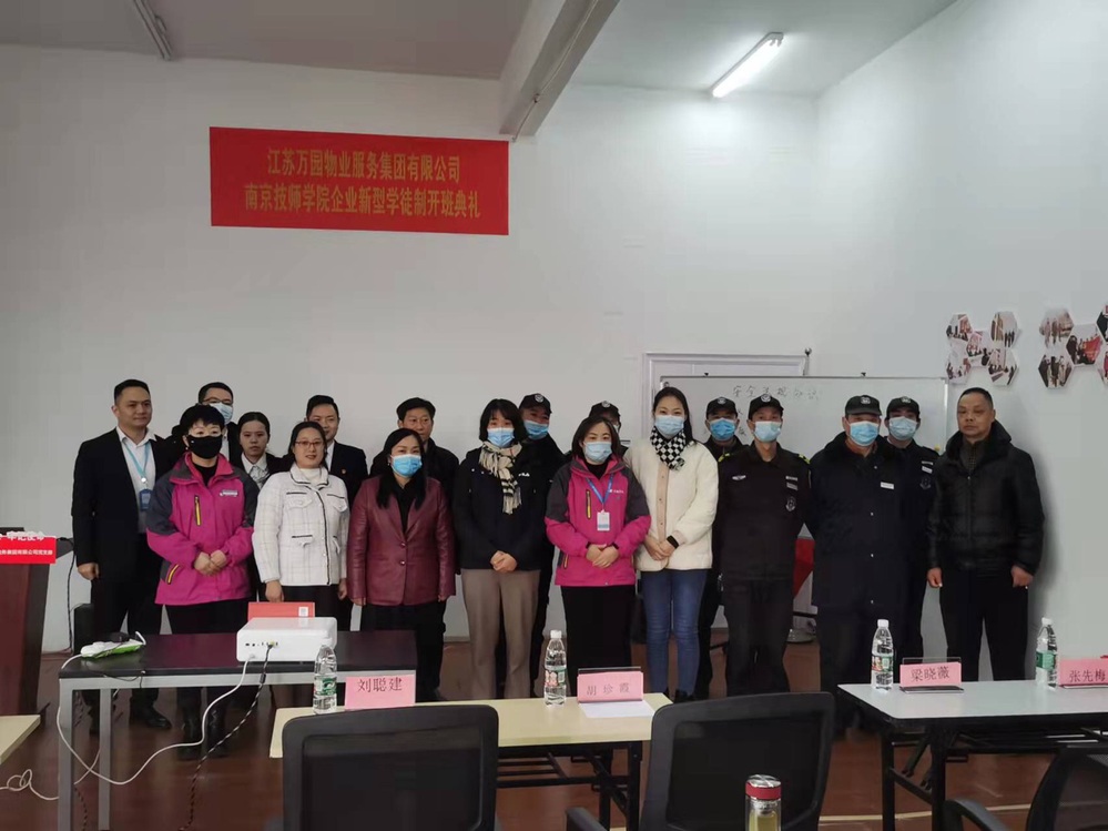 2022年1月21日上午,南京技师学院现代服务系携手江苏万园物业服务集团有限公司举办现代学徒制培训开班典礼在万园物业管理中心顺利举办。万园物业企业发展中心总监刘聪建、南京技师学院现代服务系副主任胡珍霞以及相关专业教师和各岗位员工代表参加了开班典礼。