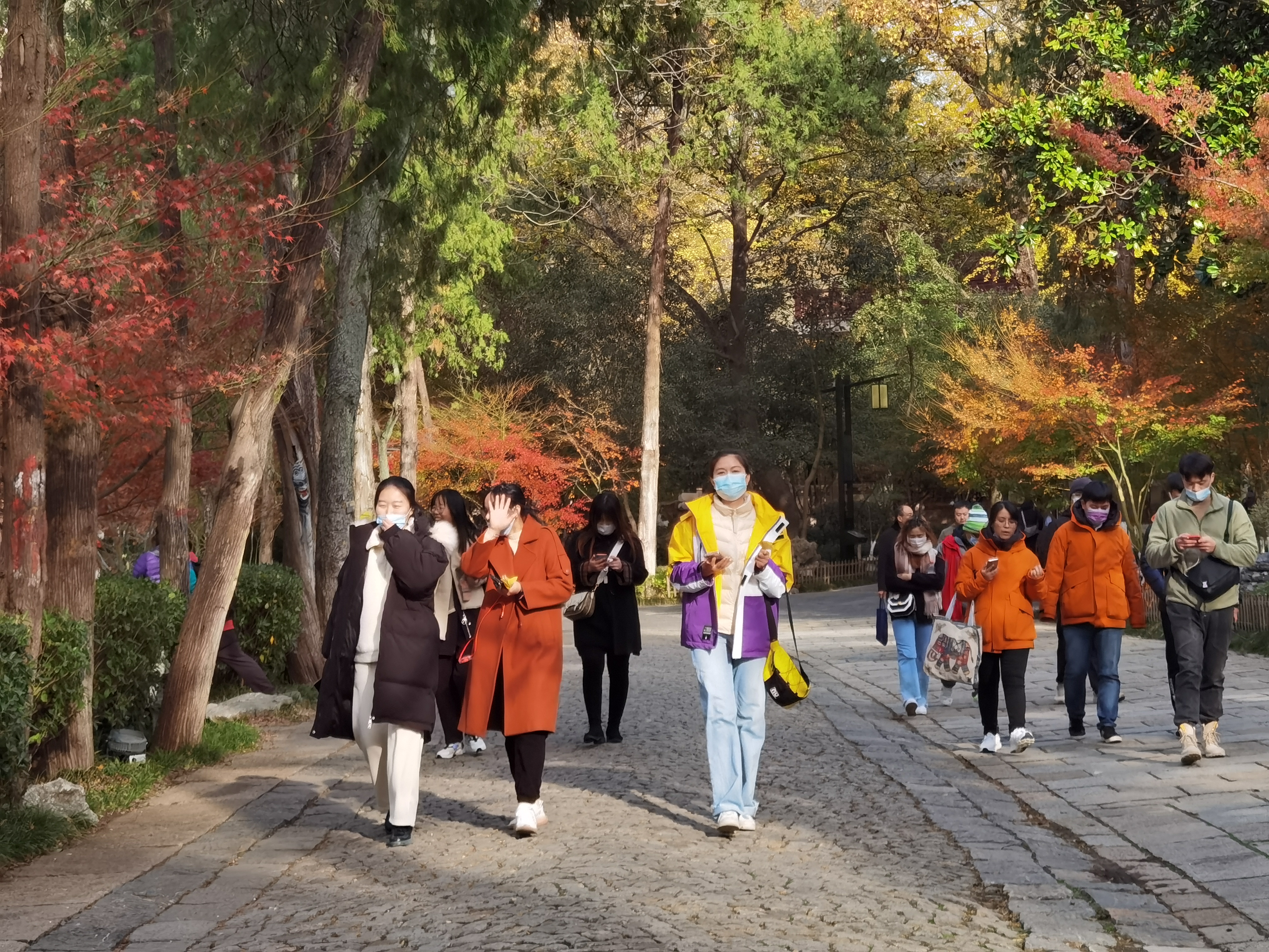 登山时,大家更是你追我赶、勇攀高峰,置身栖霞山枫林之间,在欣赏沿途美景之时,放松了身心、陶冶了情操,仿佛已与自然融为一体。期间老师们也纷纷拿起相机、手机拍摄下了一个个美好瞬间 。