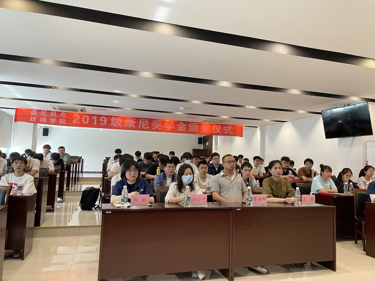 招生就业处副处长代表学院向获得“康尼奖学金”和“康尼专项奖学金”的16位同学表示热烈地祝贺。她表示,学院与康尼公司在企业新型学徒制培训、冠名班招生育人、校企联合实训中心建设、党支部共建等方面深化务实合作,取得了一系列丰硕成果。此次活动的开展,是双方加速推进共育技能人才的一个缩影,希望今后进一步创新校企合作形式,强化党建引领,促进产教学研互融互通。