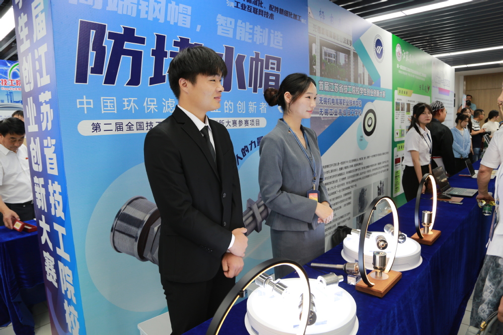 张书记随团观摩了江苏青年技能周的展示展演和竞赛项目,学院《防堵水帽》项目作为第二届全国技工院校学生创业创新大赛参赛项目也在观摩现场进行了展示。