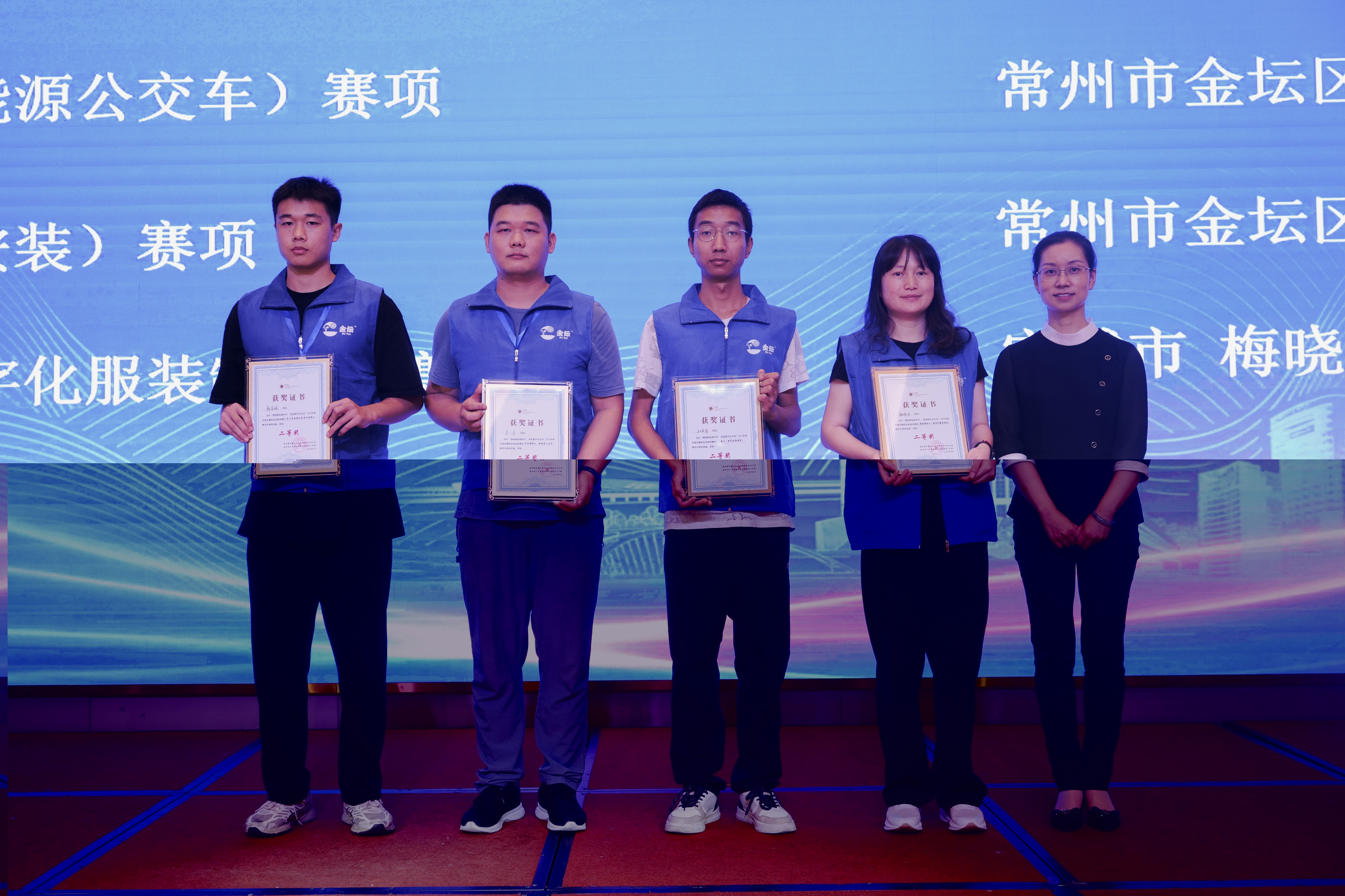 韩苏皓同学(左1)在多工序数控机床操作调整工项目获得第二名