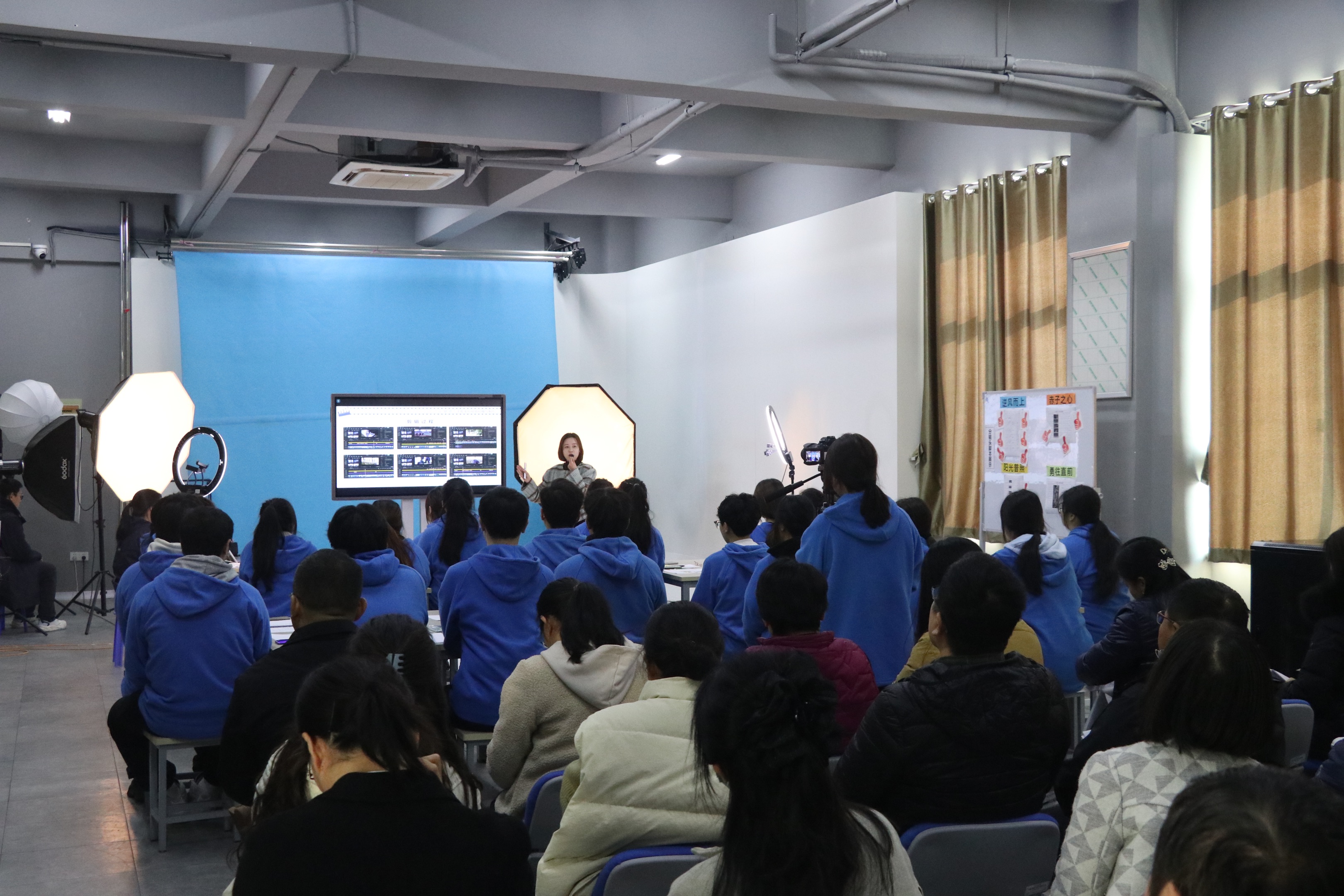 为积极推进工学一体化技能人才培养模式,提高我院教师课堂教学水平,展示我系教师教学的实力与风采,2023126日上午,我系数字艺术教研室刘玮老师在信401摄影实训中心展示了一堂校级公开课,上课内容是——《主题类短视频拍摄与制作》,全院共30多名教师参与听课与评课。
