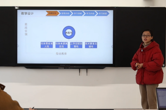 决赛分材料评审和现场决赛两部分,经系部初赛推优,共38位教师入围了决赛。现场决赛历时两天,选手们现场选取微任务并撰写教学方案和制作PPT,全神贯注地完成了长达八小时的现场制作。随后在现场展示答辩环节教师们教态自信从容,表达准确,对所学课程定位准确,教学内容体现工学一体化教学理念。