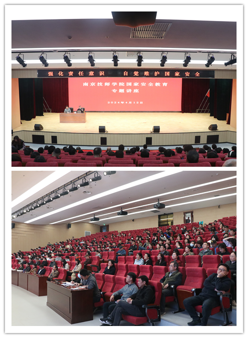 4月12日下午学院党委邀请栖霞公安分局政保大队朱警官对全体教职工开展国家安全教育专题讲座。4月15日上午的晨会中,学工处孙京宁副处长以“国家安全,人人有责”为主题为全院同学做了国旗下讲话。他在讲话中指出没有国家的安全和平,就没有人民的安居乐业,维护国家安全是我们每个公民义不容辞的责任,也是我们应当履行的义务。