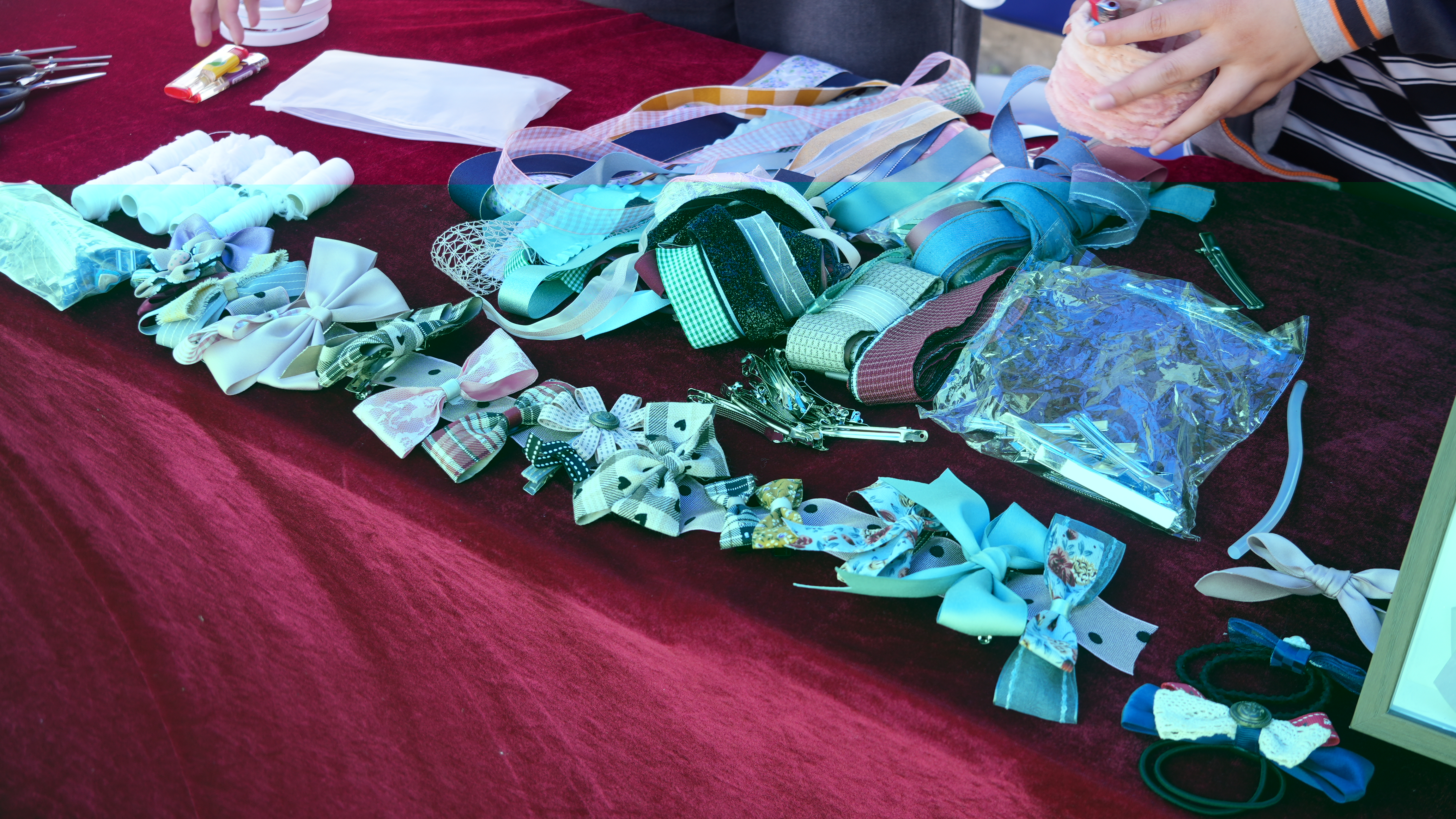 在此次活动中,院手工社团的社员们精心为大家准备了布料、针线、丝带、皱纹纸等材料,并手把手教大家制作香包、头花和皱纹纸花等。在社员们的精心指导下,参加活动的师生们都热情满满,纷纷动手制作出了富有个性和创意的作品,现场气氛十分热烈。