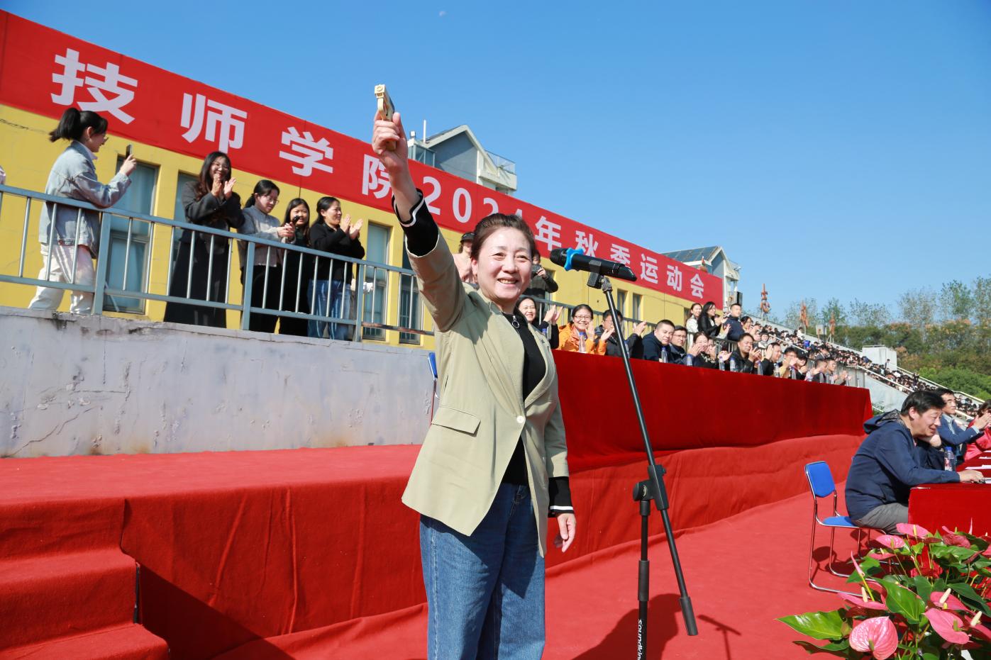 蒋可书记宣布运动会正式开幕,并亲自鸣响了发令枪。随着“砰”的一声枪响,标志着南京技师学院2024年秋季运动会的各项比赛正式拉开帷幕。