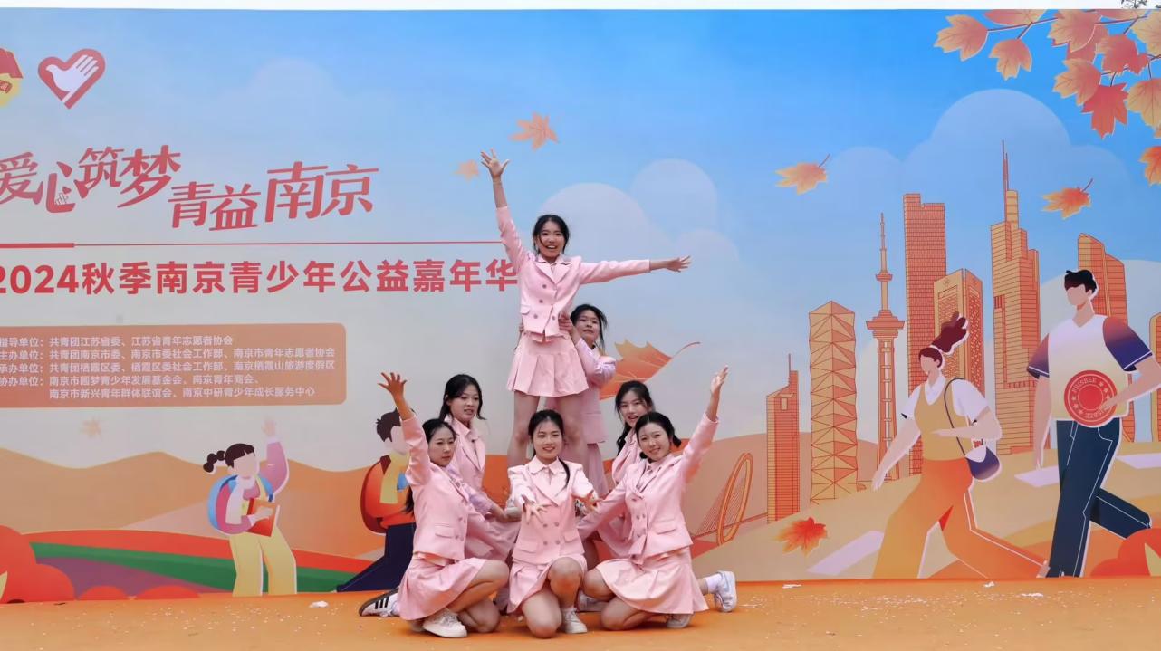 119日,由共青团江苏省委和江苏省青年志愿者协会指导,共青团南京市委、南京市委社会工作部和南京市青年志愿者协会主办的“爱心筑梦·青益南京”2024秋季南京青少年公益嘉年华活动在南京市栖霞古镇成功举办。学院青年学子受邀参加开幕式演出,启航舞蹈社和彩虹歌唱社精心编排两个节目《国家》、《快乐女孩》,为观众奉上了一场视听盛宴。