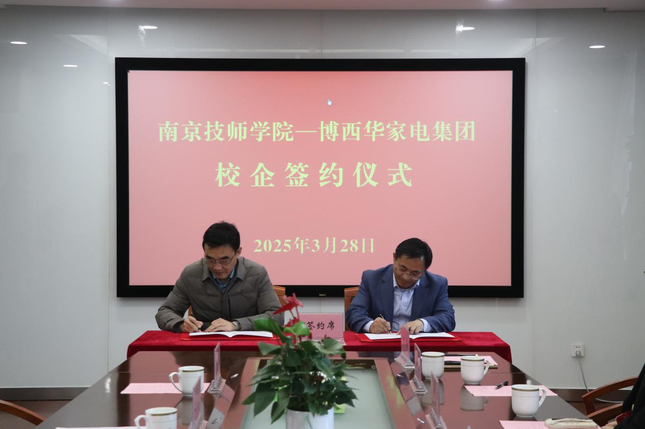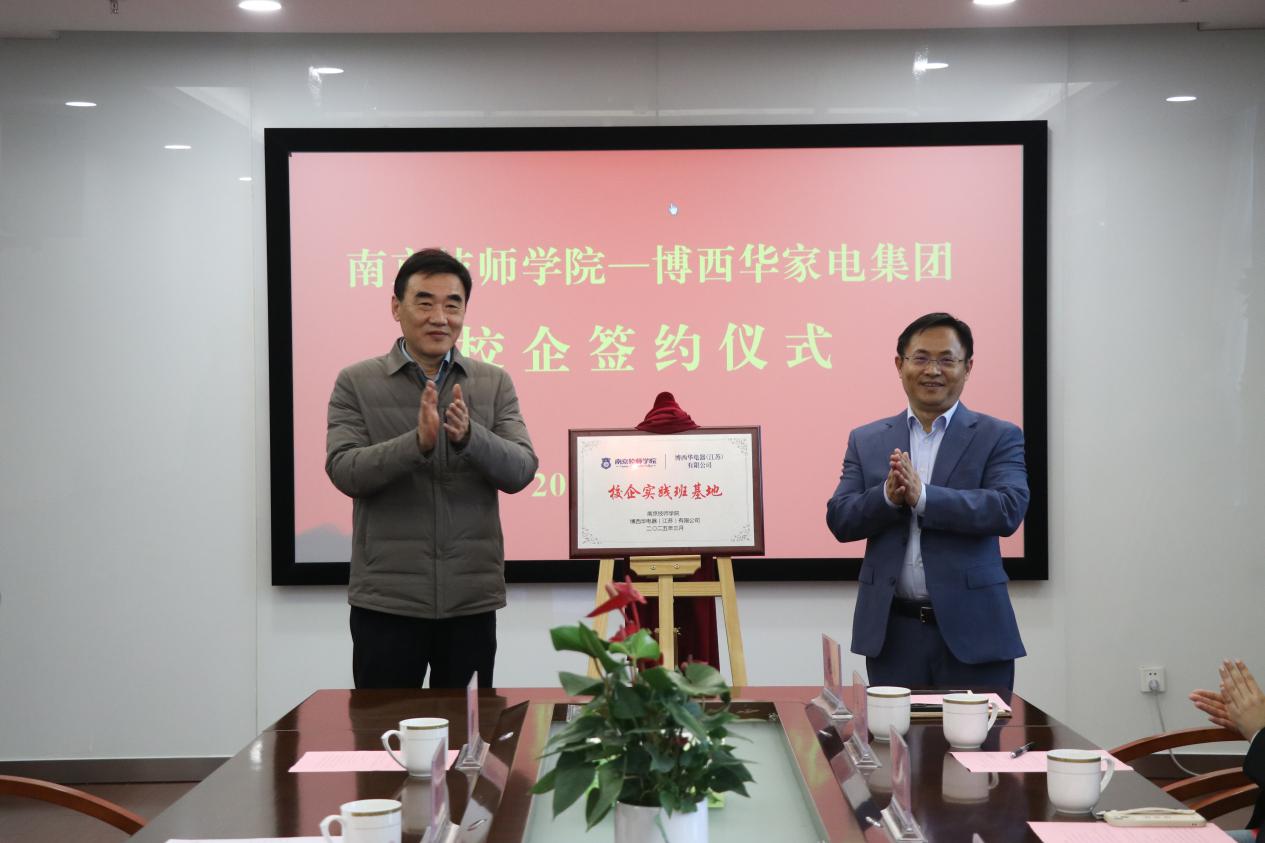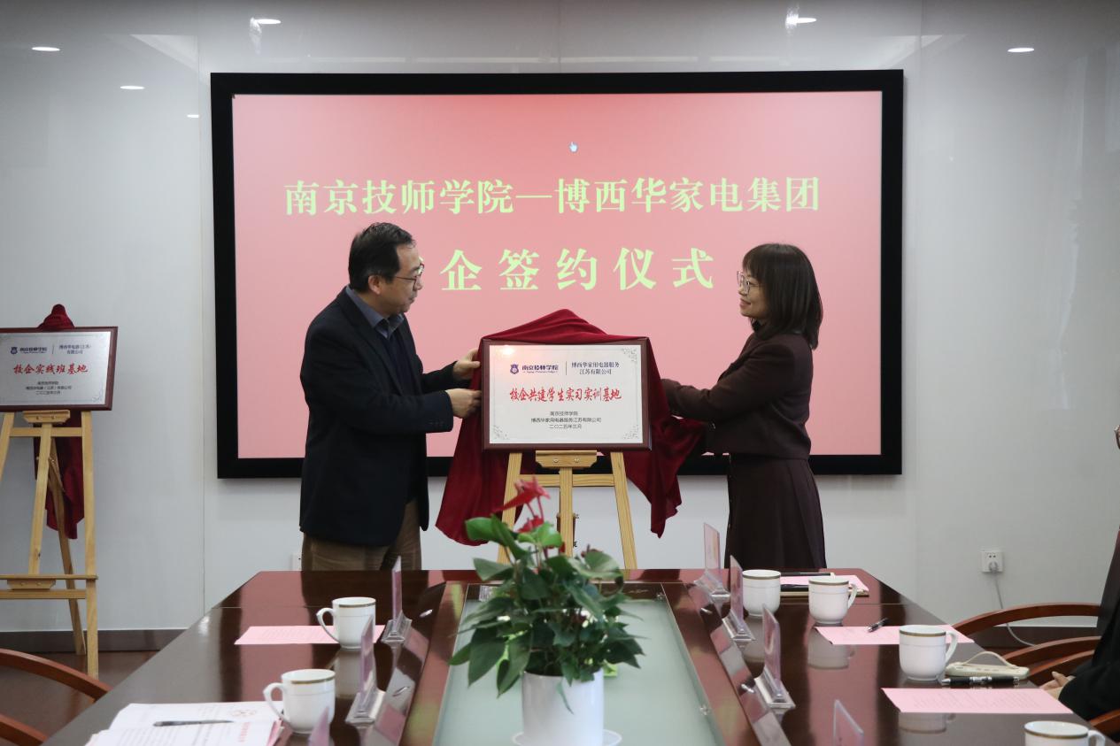 学院院长侯放、副院长赵杰、徐建华及相关部门负责人,博西华电器(江苏)有限公司董事长姚勇、博西家用电器投资(中国)有限公司大中华区人力资源副总裁田晶等8位企业方领导出席了本次签约暨揭牌仪式。会议由副院长赵杰主持。